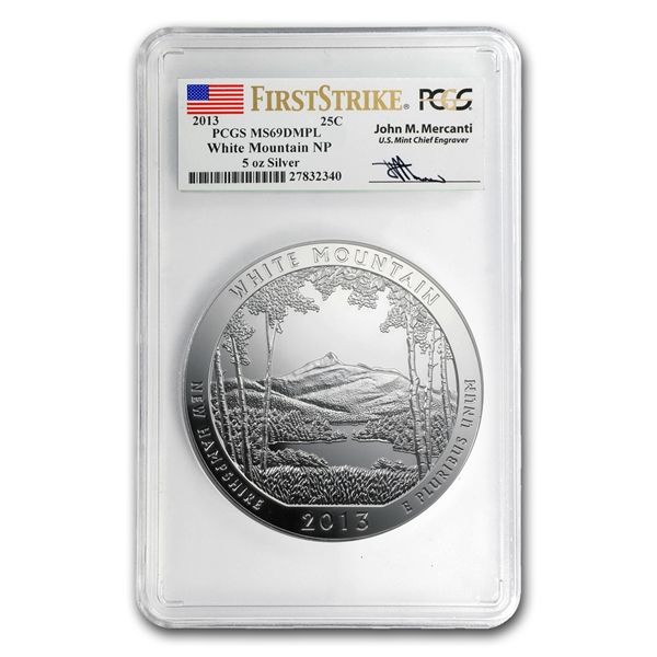 2013 5oz Silver ATB - White Mountain MS-69 DMPL(FS) PCG **|**|** 2013 5oz Silver ATB - White Mountain MS-69 DMPL(FS) PCGS-Mercanti ; MSRP: $500