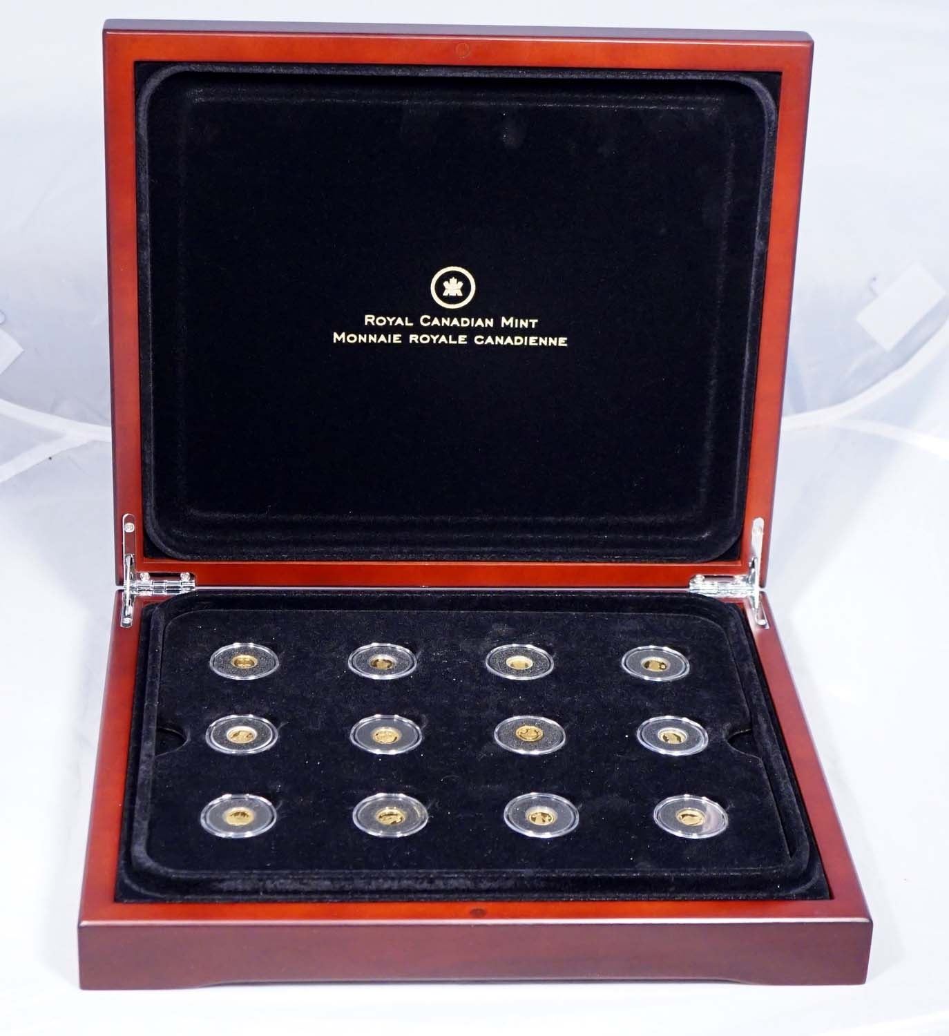 12 gold pieces W/COA per coin in Wood box and mailer. Also comes with personal brass magnifier.