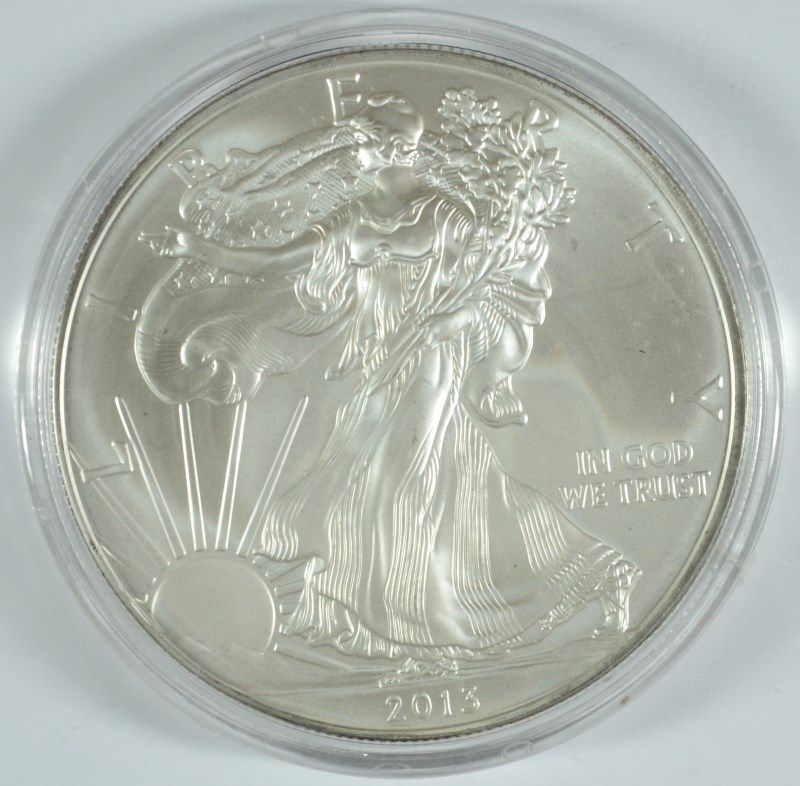 2013 AMERICAN SILVER EAGLE, GEM BU IN CAPSULE