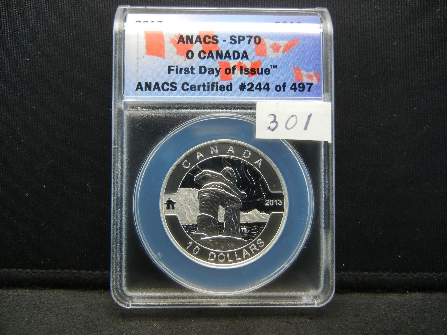 2013 ANACS SP70 Canada Silver $10 First Day of Issue - The Inukshuk