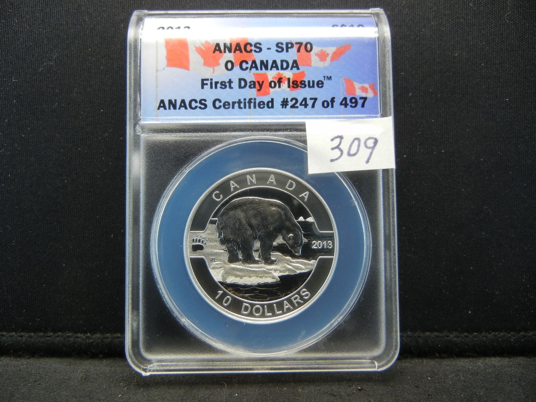2013 ANACS SP70 Canada Silver $10 First Day of Issue - The Polar Bear
