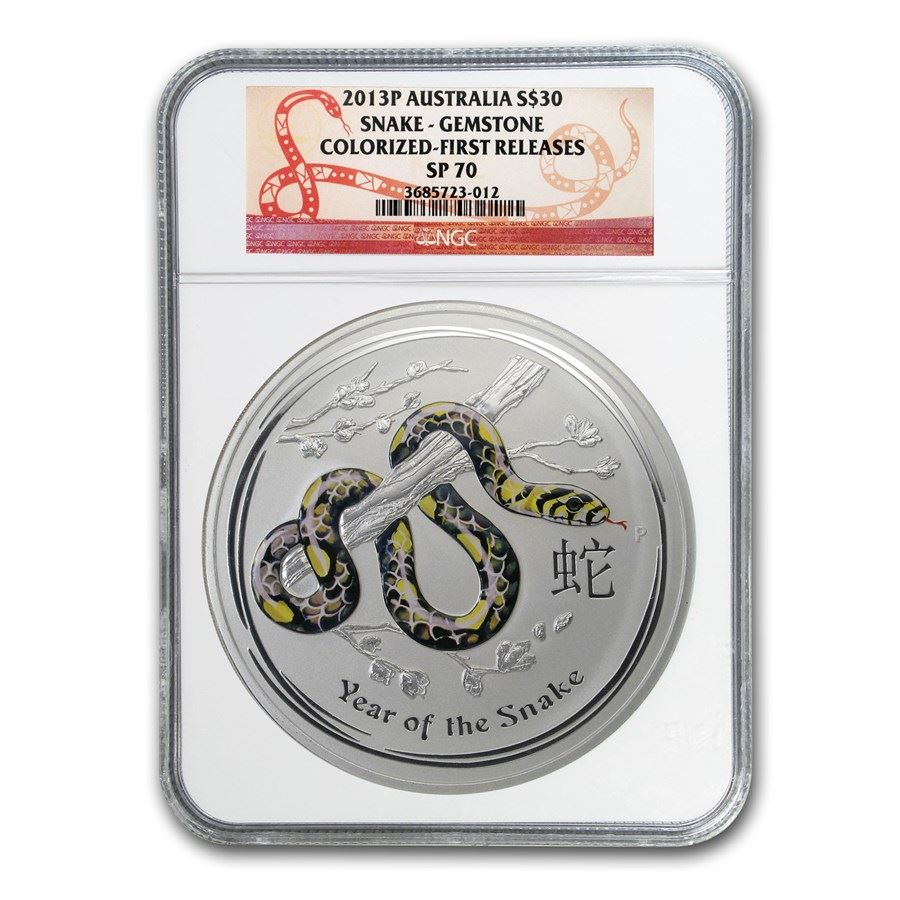 2013 AUS 1 kilo Silver Lunar Snake SP-70 NGC FR (Gemstone Eye)