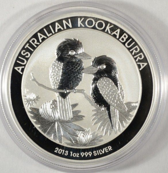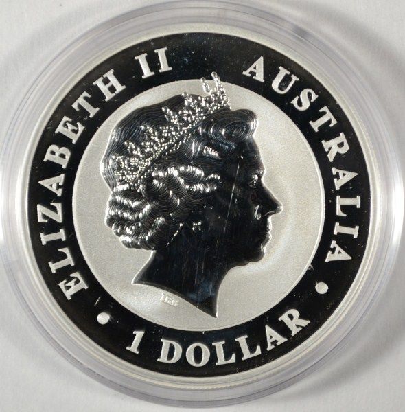 ONE OUNCE .999 SILVER ONE DOLLAR KOOKABURRA FROM AUSTRALIA, A VERY POPULAR COIN, ESTIMATE $55.00 TO $60.00