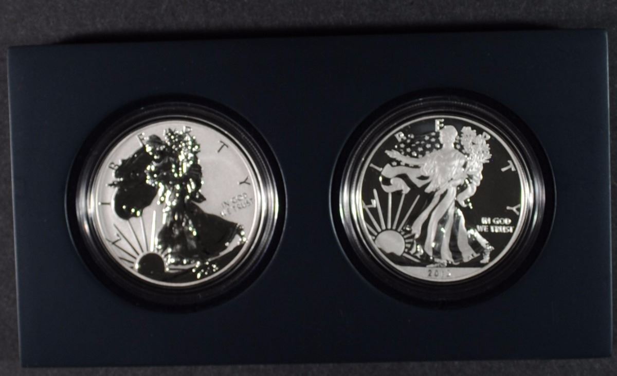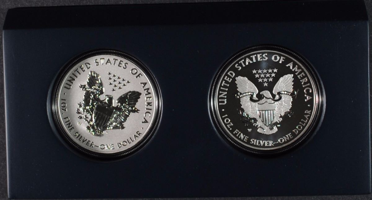 Reverse Proof & Enhanced Unc Am. Silver Eagle Set in Original Box/Coa - estimate $120-$150