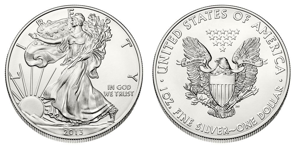 One 2013 American Silver Eagle .999 Fine Silver Dollar Coin.
