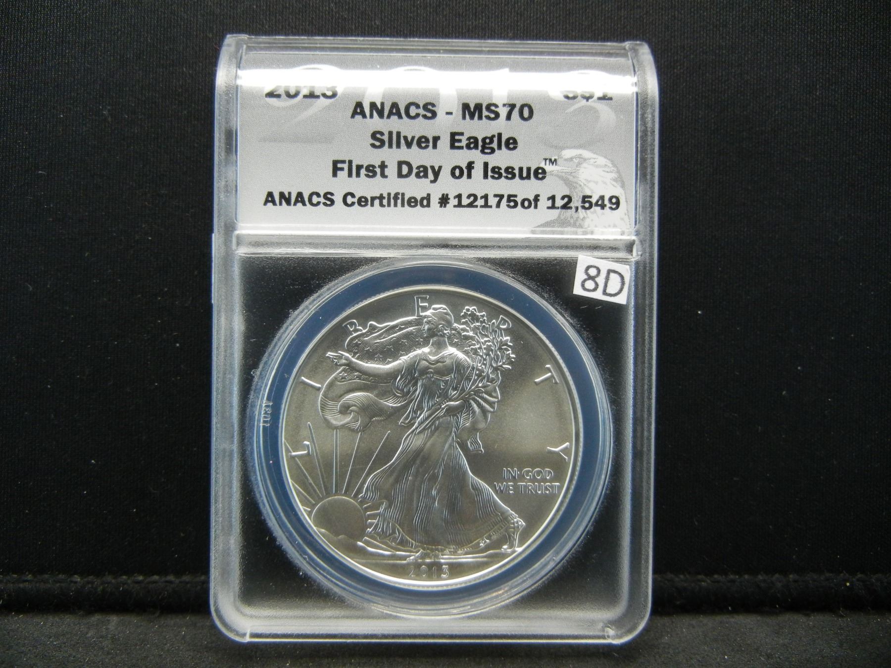 2013 American Silver Eagle ANACS MS70 First Day of Issue