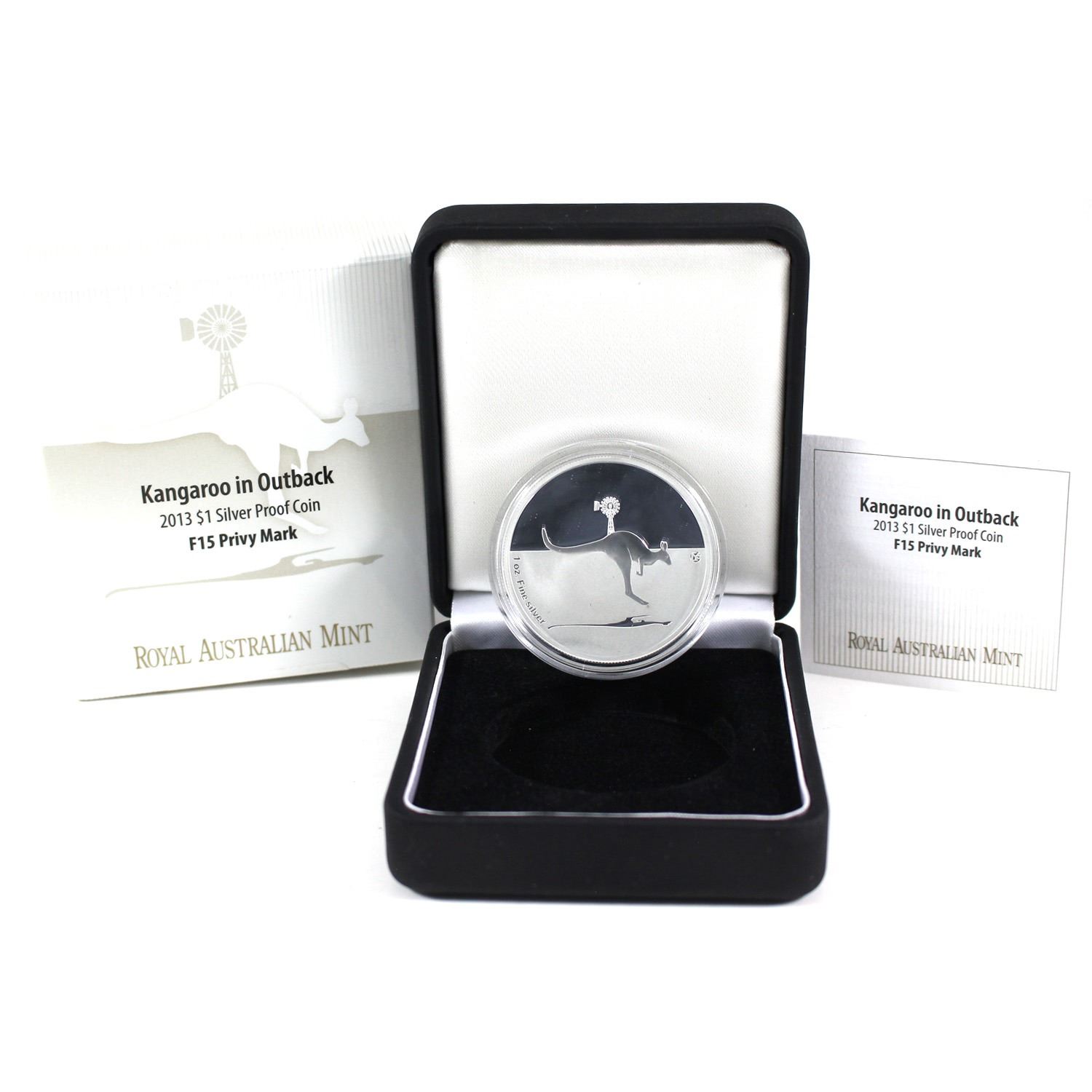 2013 Australia $1 Kangaroo in Outback with F15 Privy Mark 1oz .999 Fine Silver Proof Coin. Mintage of only 5000! (TAX Exempt)