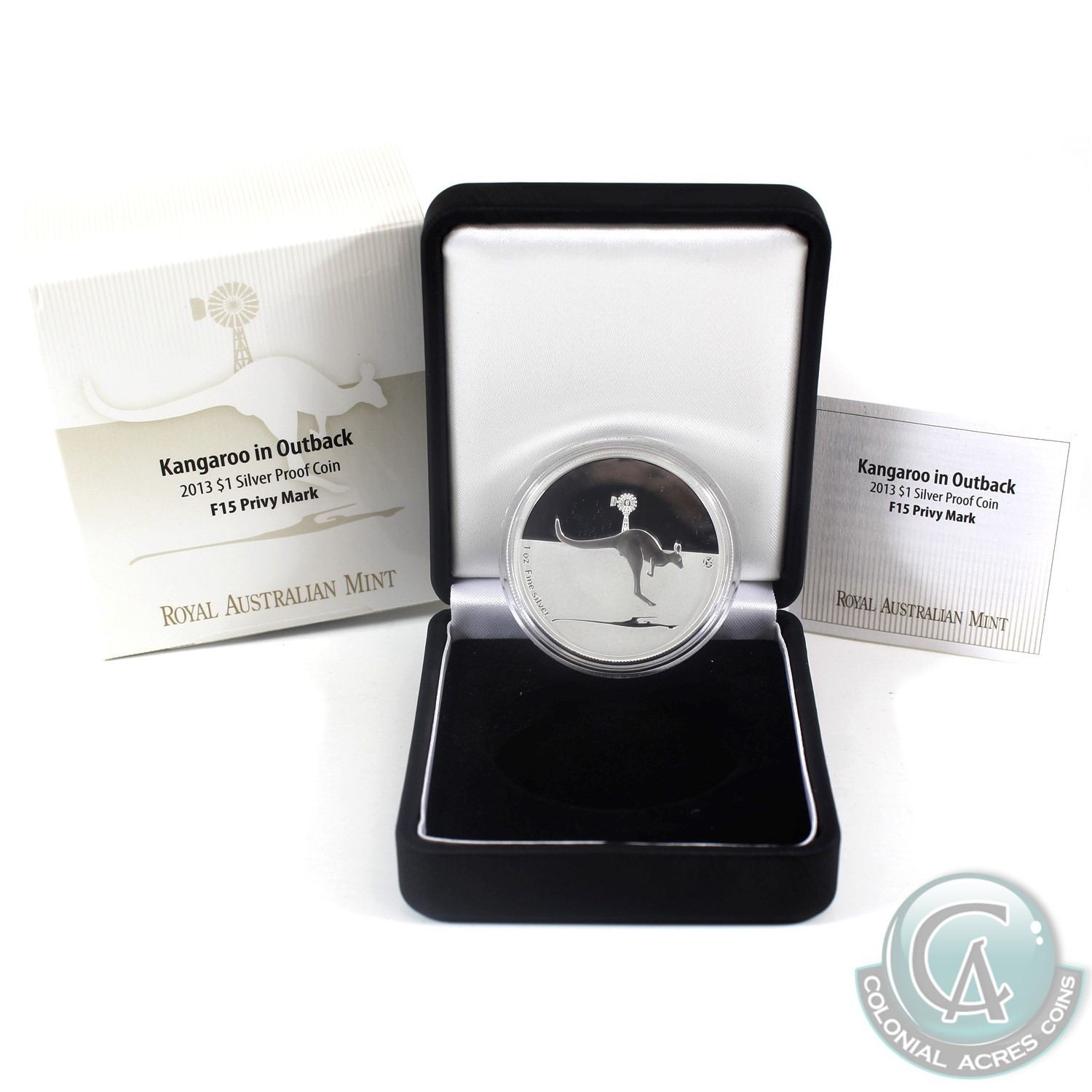 2013 Australia $1 Kangaroo in the Outback 1oz F15 Privy Mark Fine Silver Coin. (TAX Exempt)