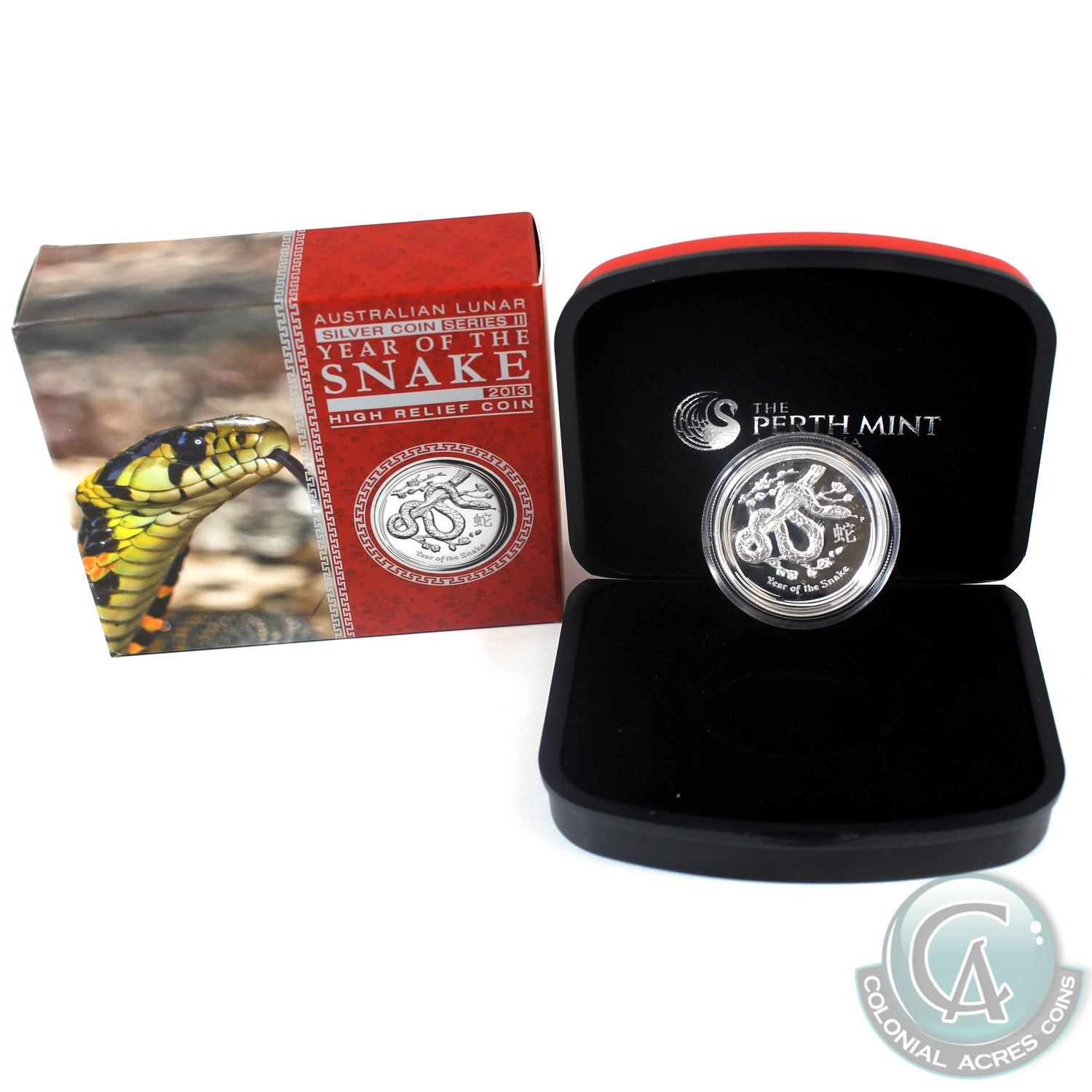 2013 Australia $1 Lunar Year of the Snake 1oz High Relief Fine Silver Proof Coin. (TAX Exempt)