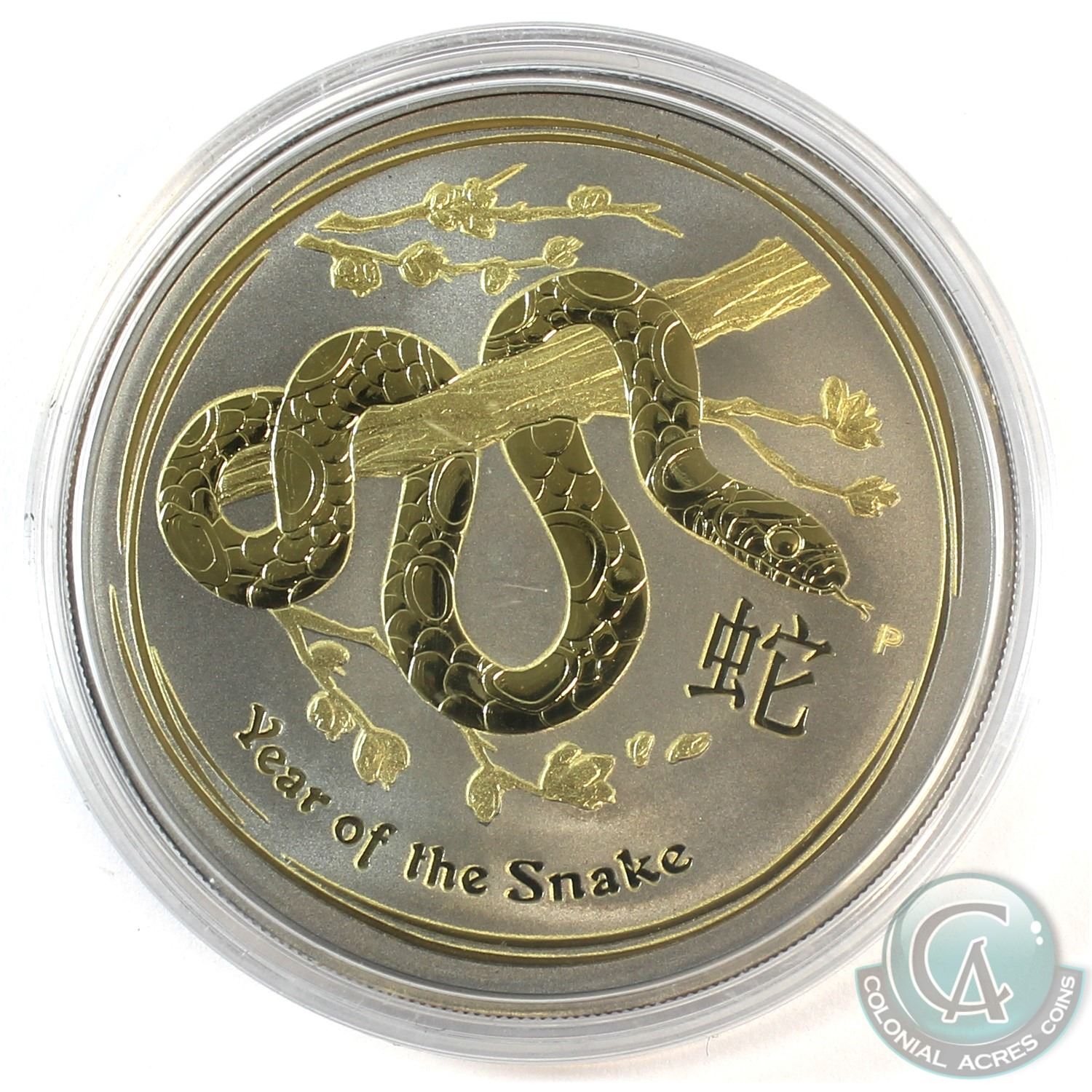 2013 Australia $1 Year of the Snake 1oz Fine Silver Coin with Selective Gold Plating (Tax Exempt)