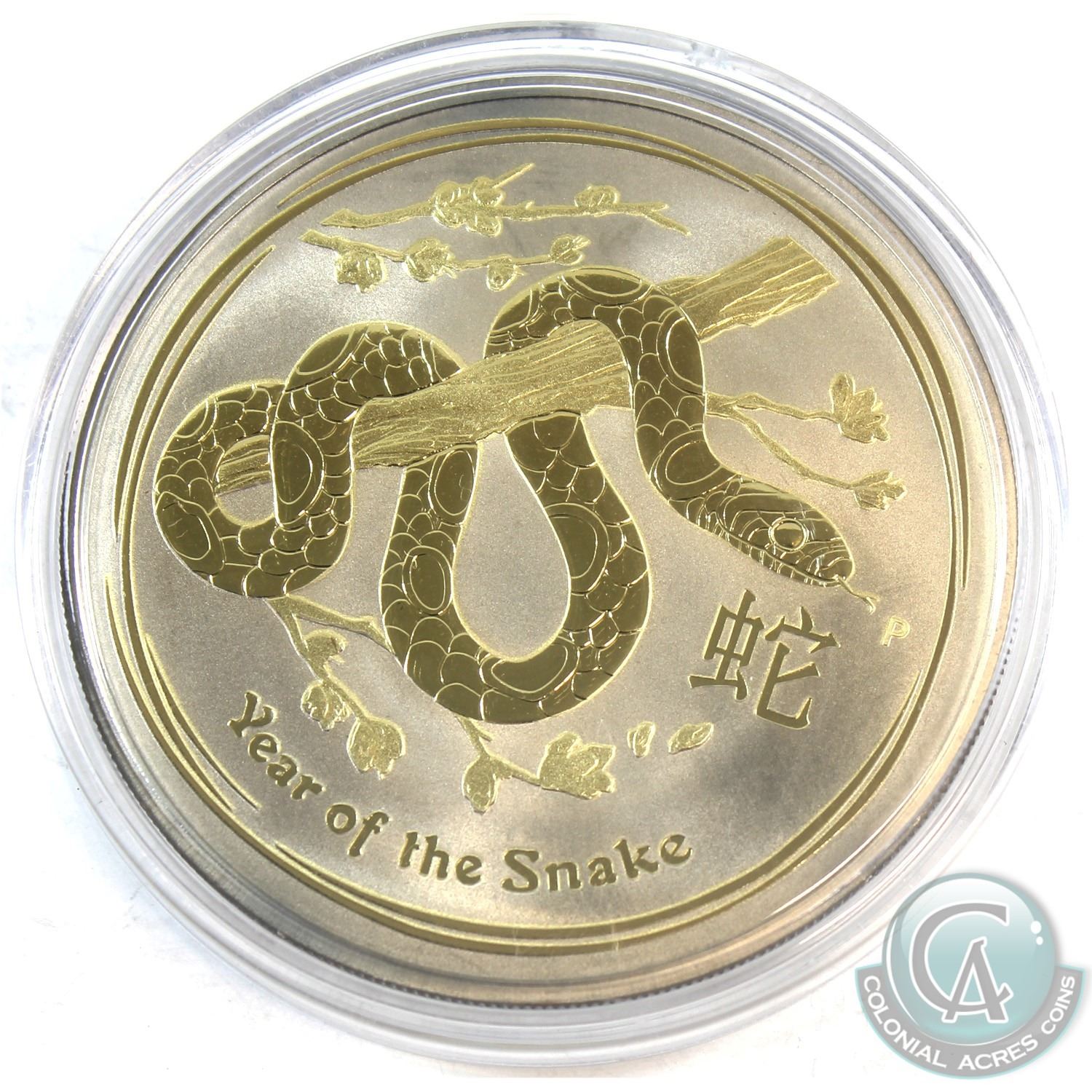 2013 Australia 1oz Gold & Ruthenium Plated Fine Silver Year of the Snake Coin in Capsule. (TAX Exempt)