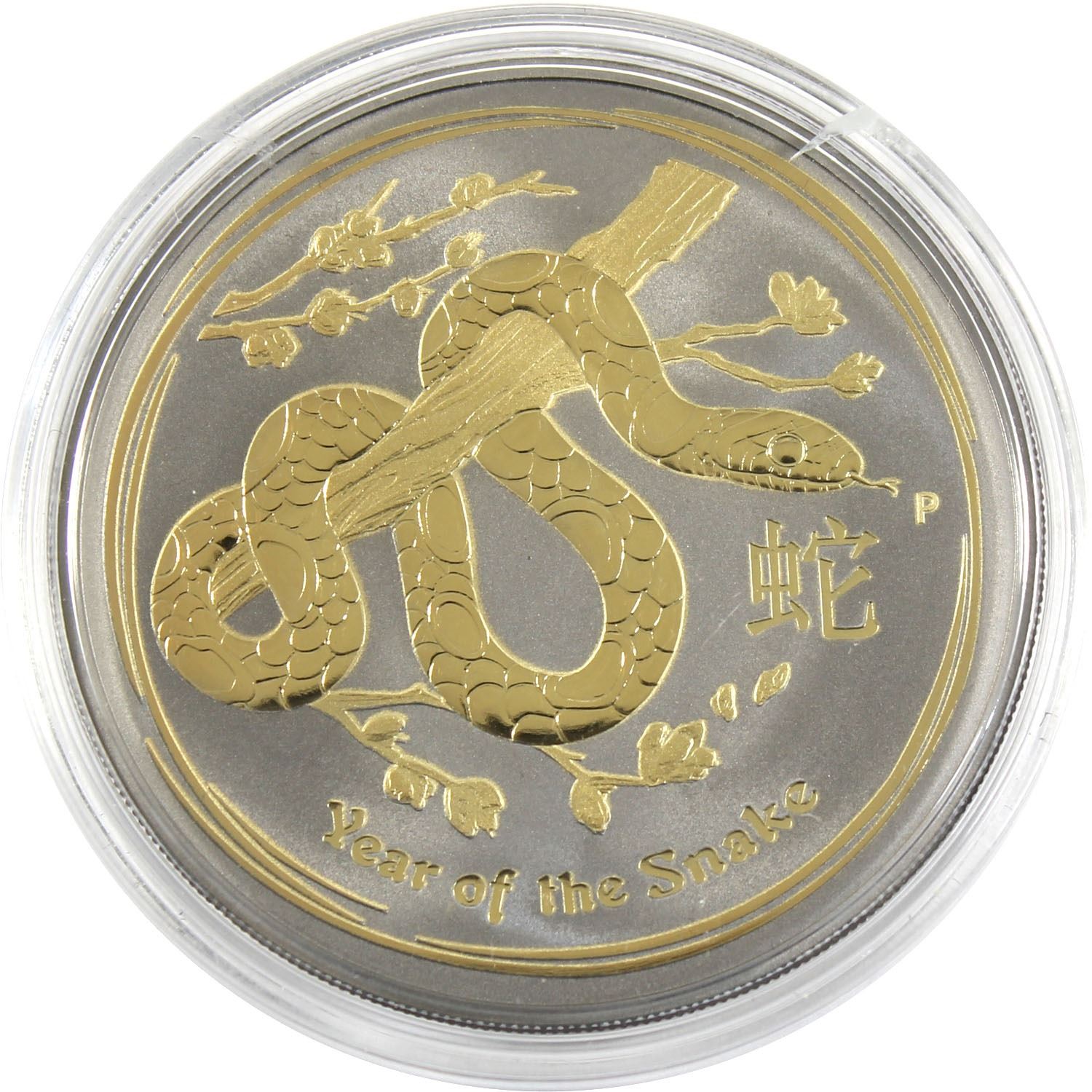 2013 Australia 1oz Ruthenium & Gold Plated Year of the Snake .999 Fine Silver Coin (capsule is cracked). TAX Exempt