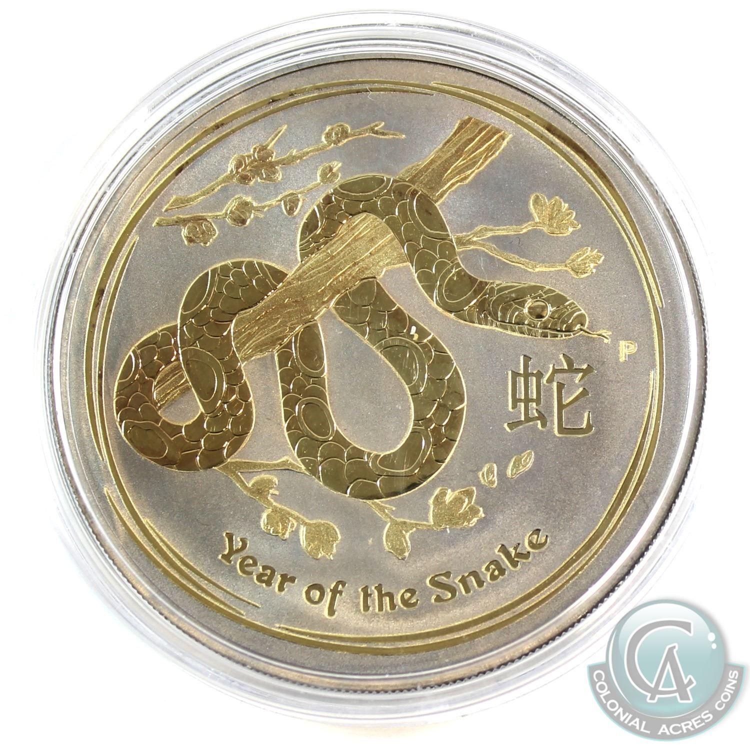 2013 Australia Ruthenium Plated & Gilded 1oz .999 Fine Silver Year of the Snake (Lightly Toned). (TAX Exempt)