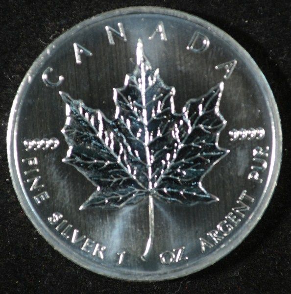 LATEST EDITION OF THE ONE OUNCE BULLION COIN PRODUCED BY CANADIAN GOVERMENT, ONE OUNCE .9999 SILVER, EST. $50.00 TO $55.00