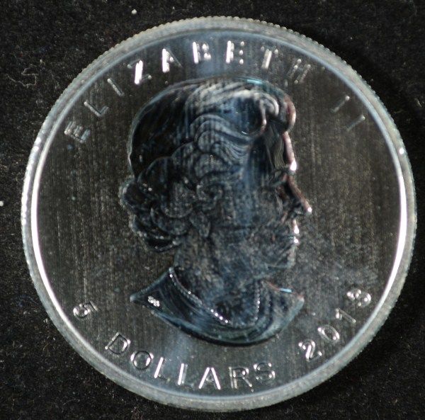 2013 BU CANADIAN MAPLE LEAF, ONE OUNCE .9999 SILVER