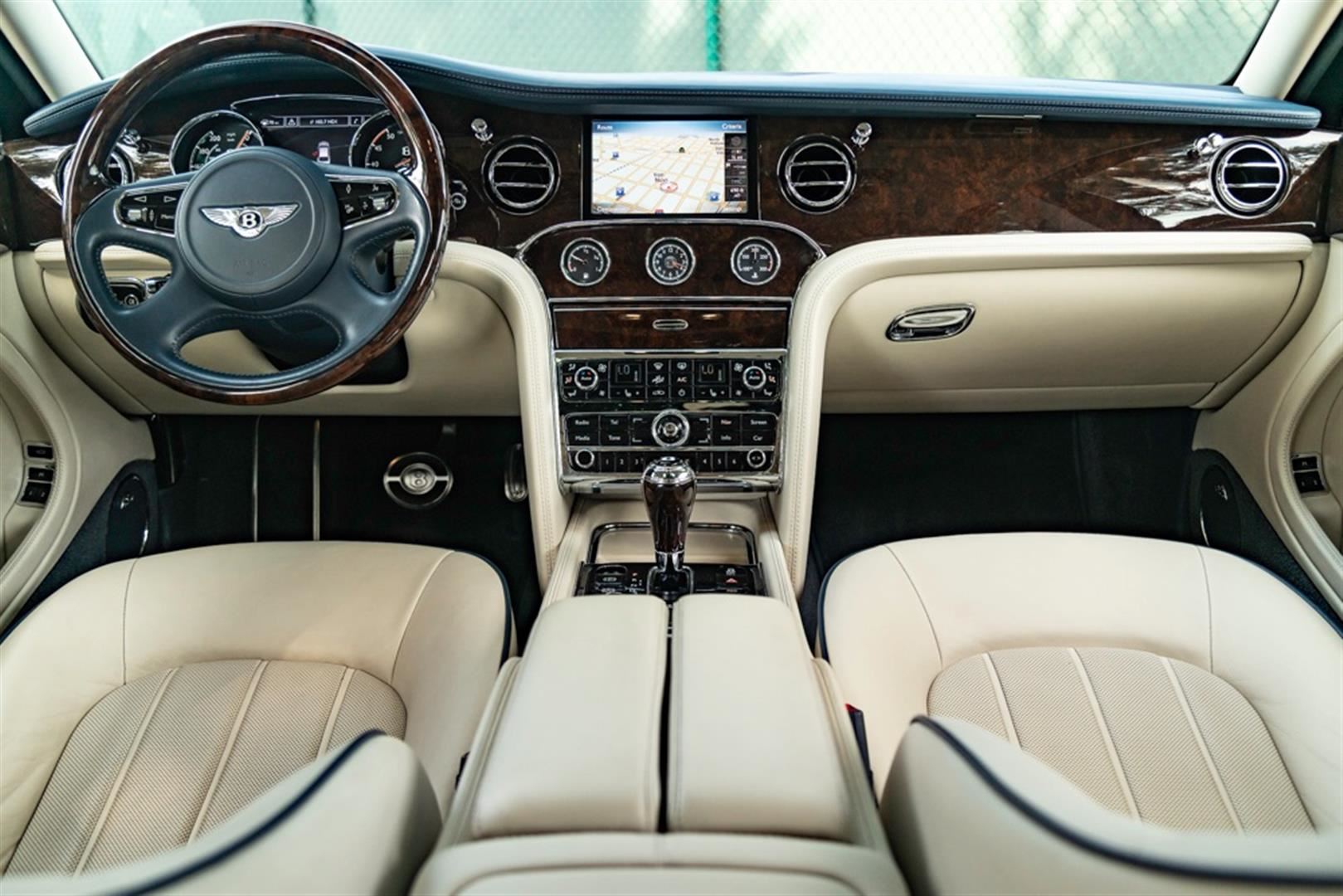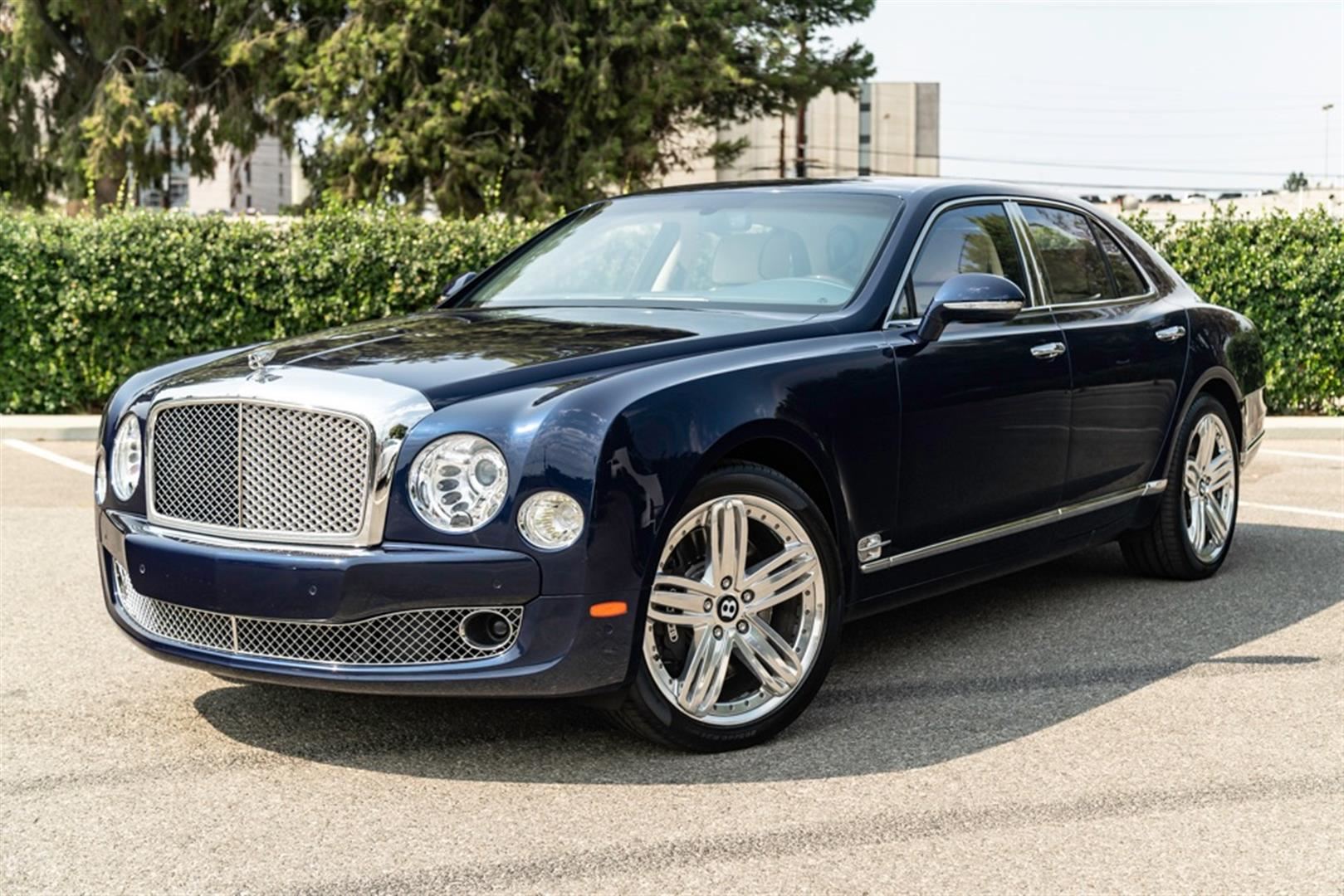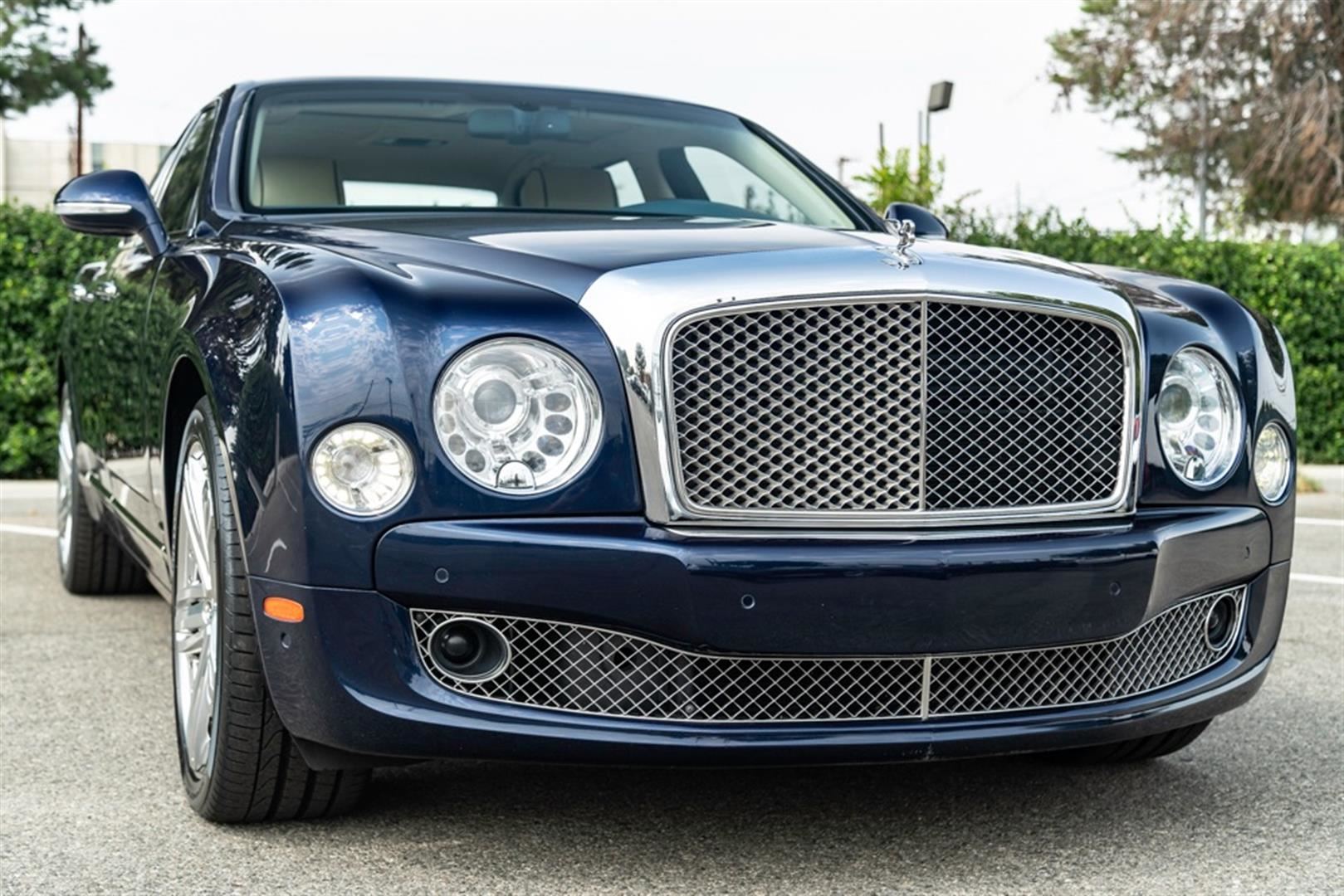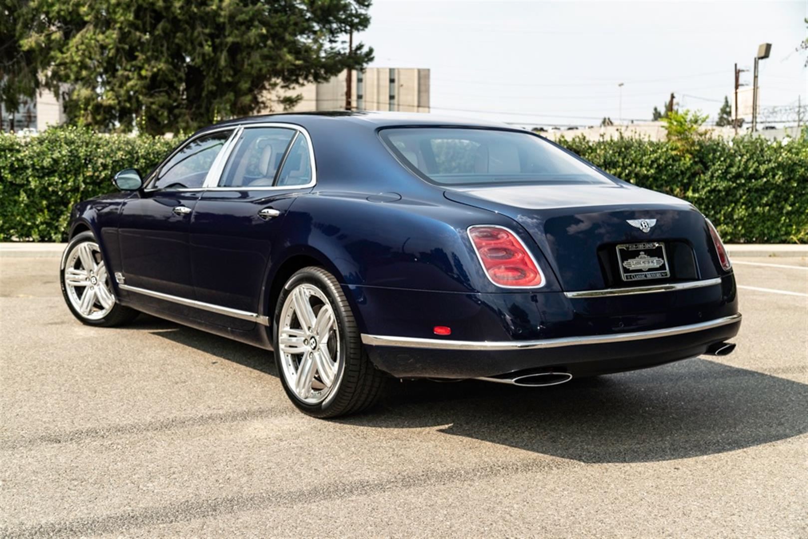 Absolutely gorgeous 2013 Bentley Mulsanne in rare Peacock Blue Metallic which is a $4,310 option with Linen leather interior. This Mulsanne is well optioned and sold new for just over $365,000 msrp. Options include: 21" polished 2 piece wheels ($6,810), premiere specification package ($14,425), wood and leather steering wheel ($2,455) deep pile floor mats ($1,365), veneered door panels ($1,530), chromed radiator wheel ($1,670), veneered gear lever ($655), 6 disc DVD player ($1,045), adaptive cruise control system ($3,600), Naim for Bentley sound system ($7,565), rear entertainment system ($9,030), wing badges and chrome inlay ($2,640), seat piping ($2,245), wi-fi hot spot ($1,060), illuminated folder down rear vanity mirrors ($1,640), embroidered Bentley emblems to all headrests ($640) and all the standard Mulsanne options. This is not your typical base Mulsanne it has nearly $69,000 in options, not to mention the stunning color combination the sets this Mulsanne way above the rest! Just serviced and has 4 brand new tires installed. It's a two owner car, clean car-fax no drama. This one will not disappoint and is a must see!