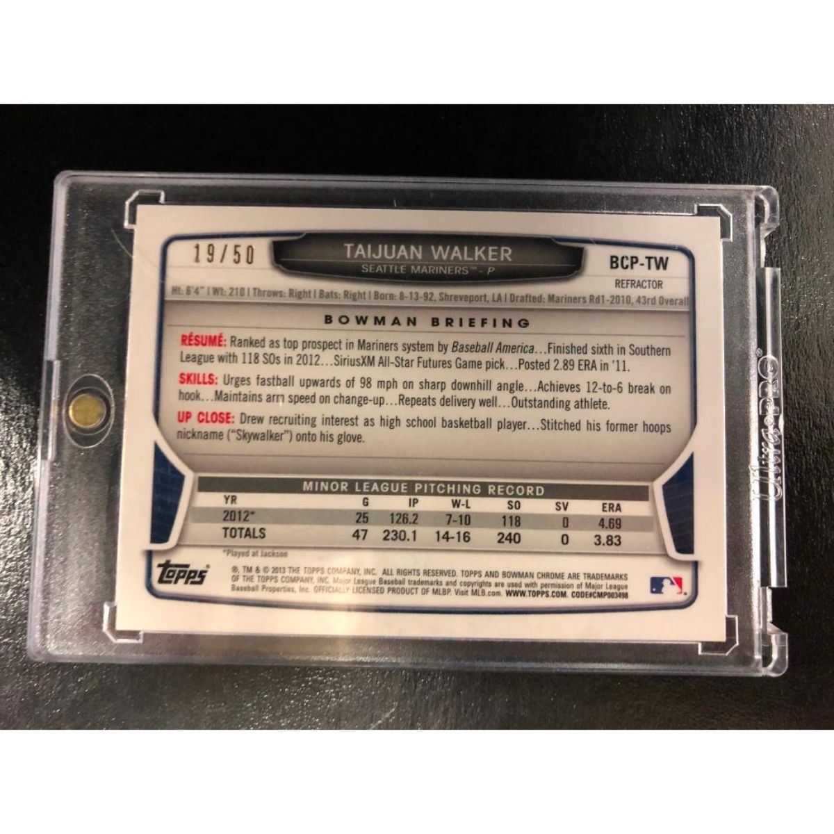 A 2013 Bowman Chrome Taijuan Walker Gold Refractor Auto SP 19/50. Limited Edition Numbered Series Card Out Of 50. Card Is In Very High Grade Condition. View Pictures For Further Details.