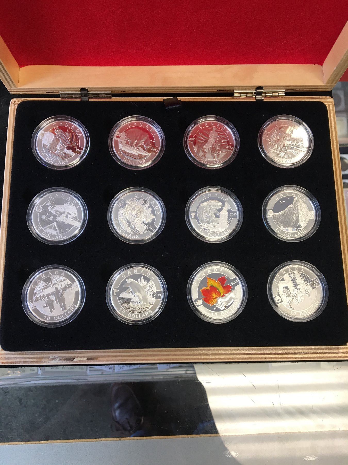 NICE SET OF CANADA $10 SILVER COINS! EACH IS .999 PURE SILVER AND WEIGHS 15.87 GRMS..COMES WITH ITS ORIGINAL WOODEN CASE AND OUTER BOX!