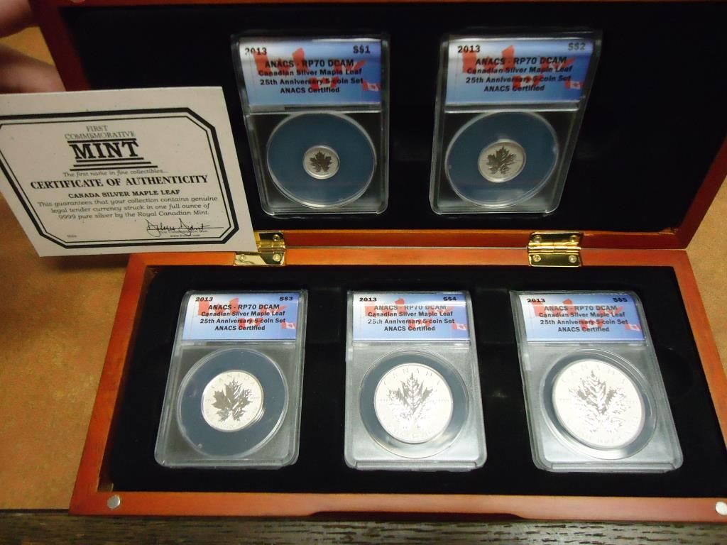 REVERSE PROOF 5 COIN SET ALL CERTIFIED RP70 DCAM BY ANACS INCLUDES: $1, $2, $3, $4 & $5 COINS. THE COINS ARE IN A FANCY WOOD CASE, CHECK OUT THIS SET!
