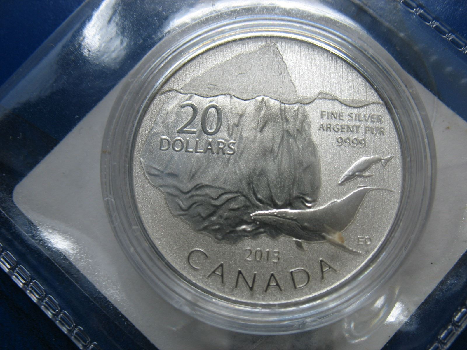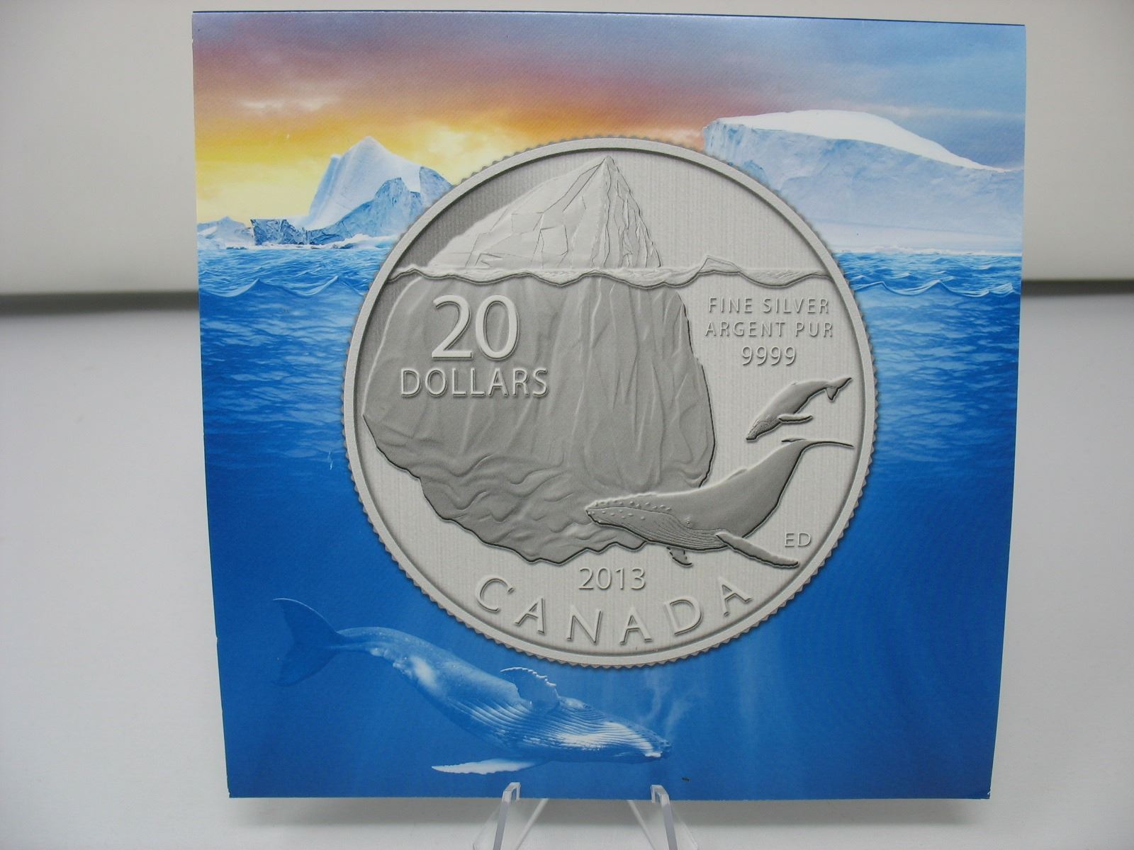 2013 CANADIAN .9999 SILVER $20 MINT COIN - WHALE & ICEBERG with Folder