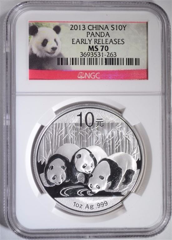 2013 CHINA SILVER PANDA, NGC MS-70 EARLY RELEASES ESTIMATE $90 - $100.
