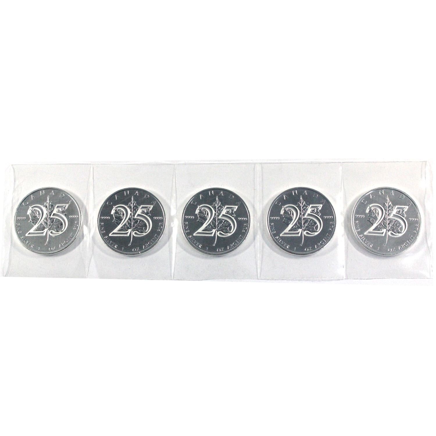 2013 Canada 1oz 25th Anniversary of the Maple Leaf .9999 Fine Silver Maples in Sealed Mint Plastic. 5pcs (TAX Exempt)
