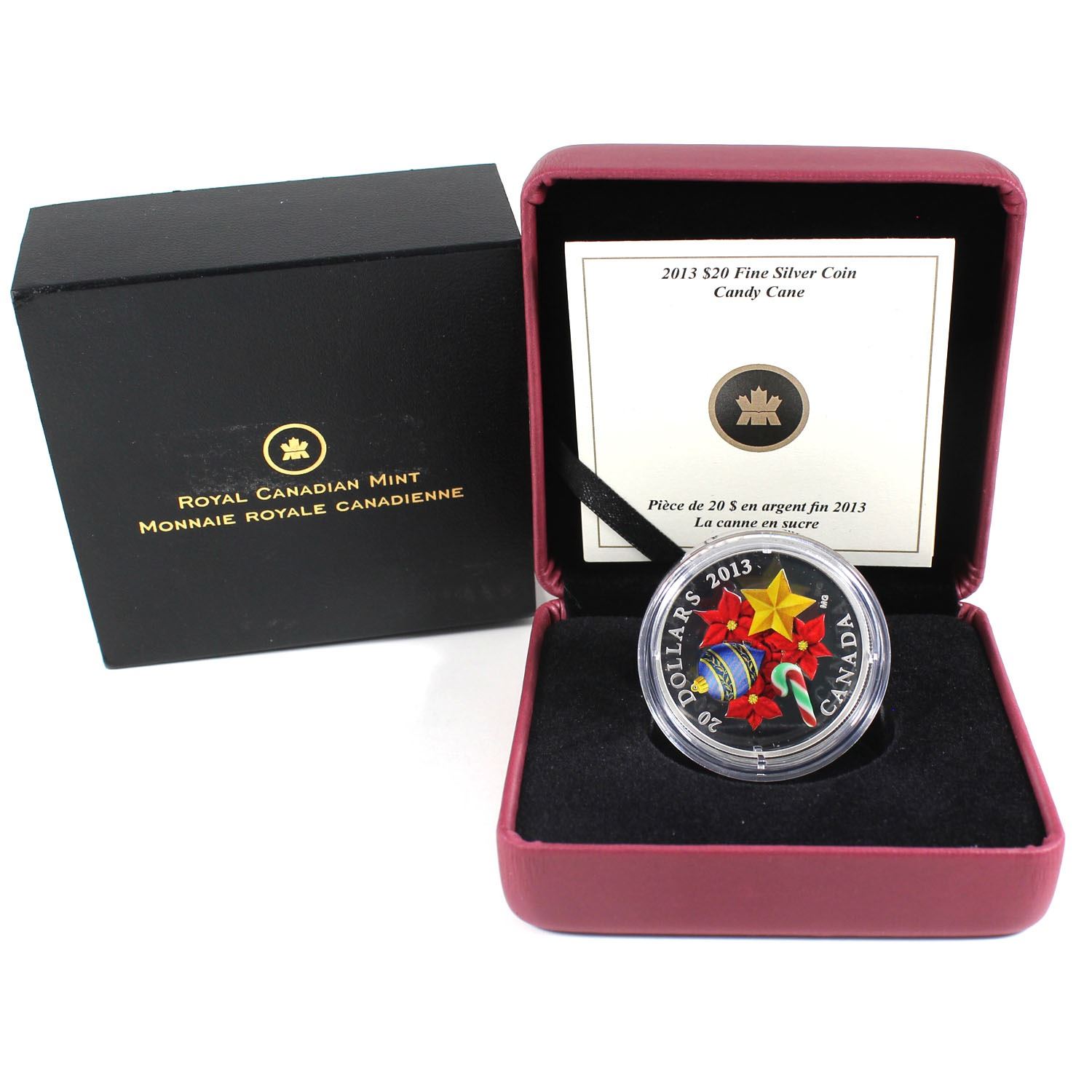 2013 Canada $20 Candy Cane Fine Silver Coin (capsule lightly scratched). TAX Exempt