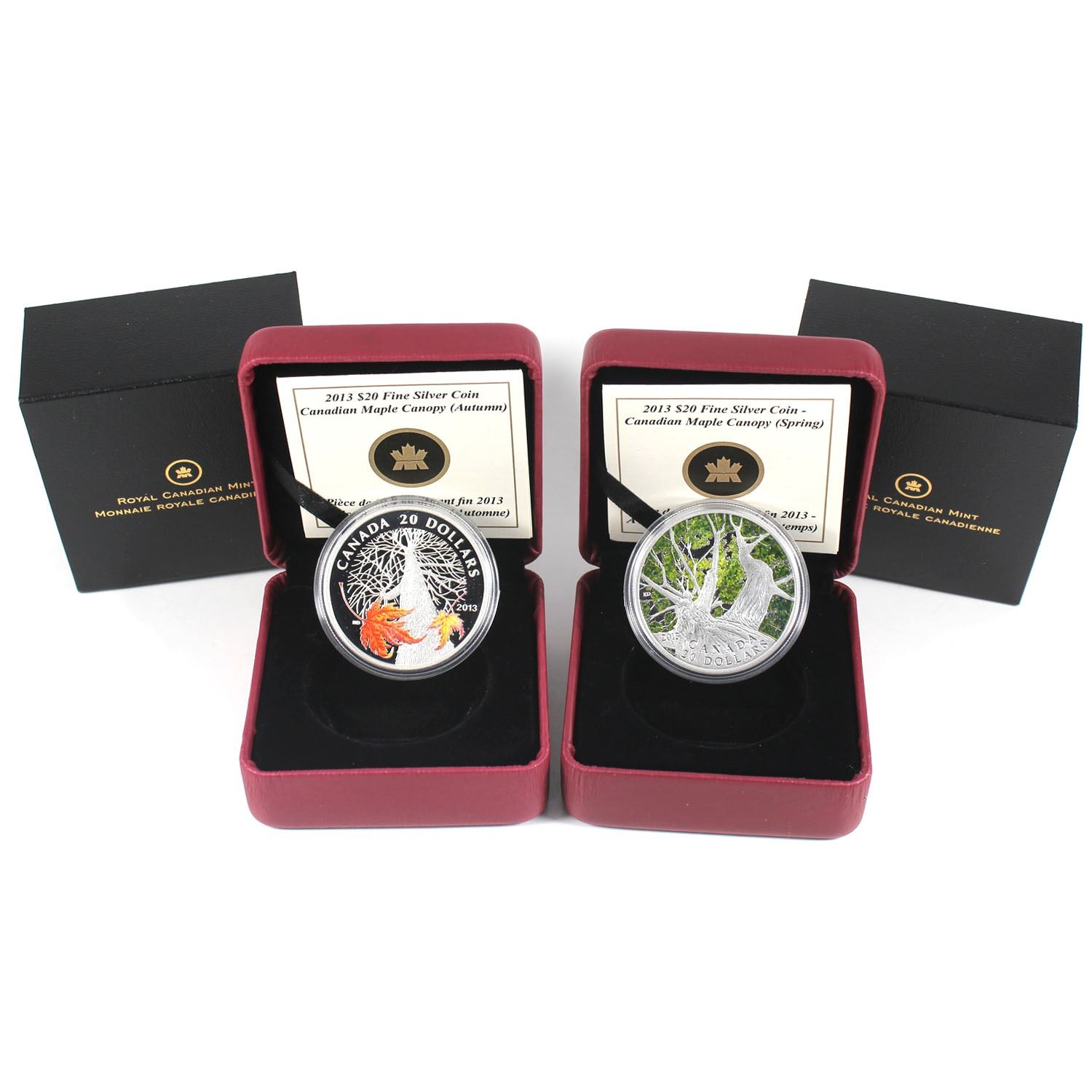 2013 Canada $20 Maple Canopy Spring & Autumn Fine Silver Coins (TAX Exempt). 2pcs.