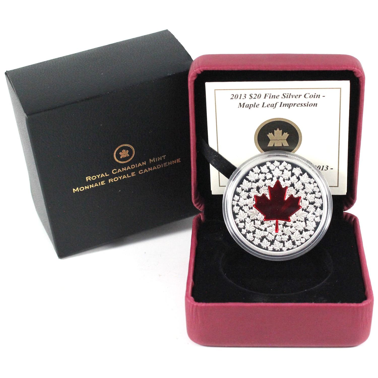 2013 Canada $20 Maple Leaf Impression Fine Silver Coin with Red Enamel. (TAX Exempt)