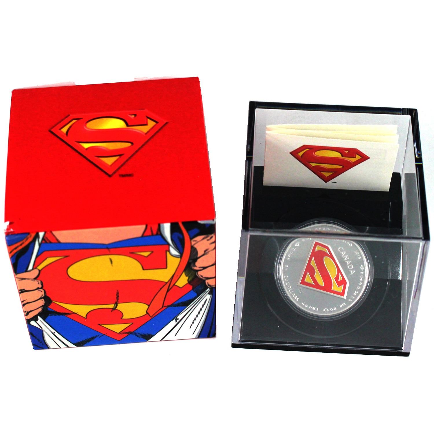 2013 Canada $20 Superman's Shield Fine Silver Coin (Sleeve has light wear). TAX Exempt