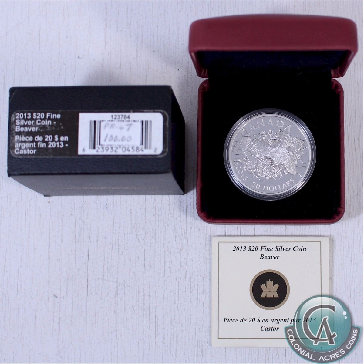 2013 Canada $20 The Beaver Fine Silver Coin (TAX Exempt) - outer box lightly tattered.