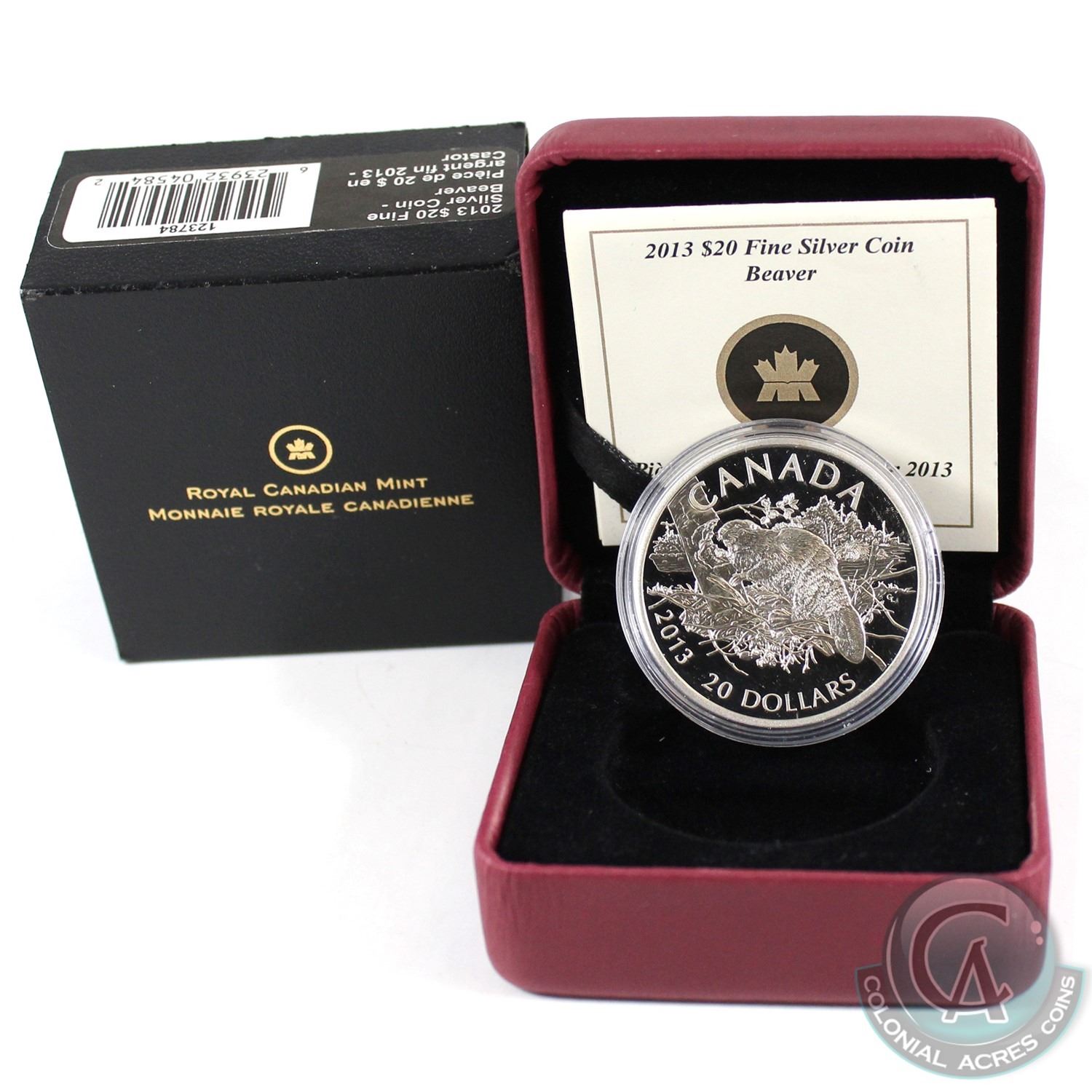 2013 Canada $20 The Beaver Fine Silver Coin (capsule lightly scratched). Tax Exempt