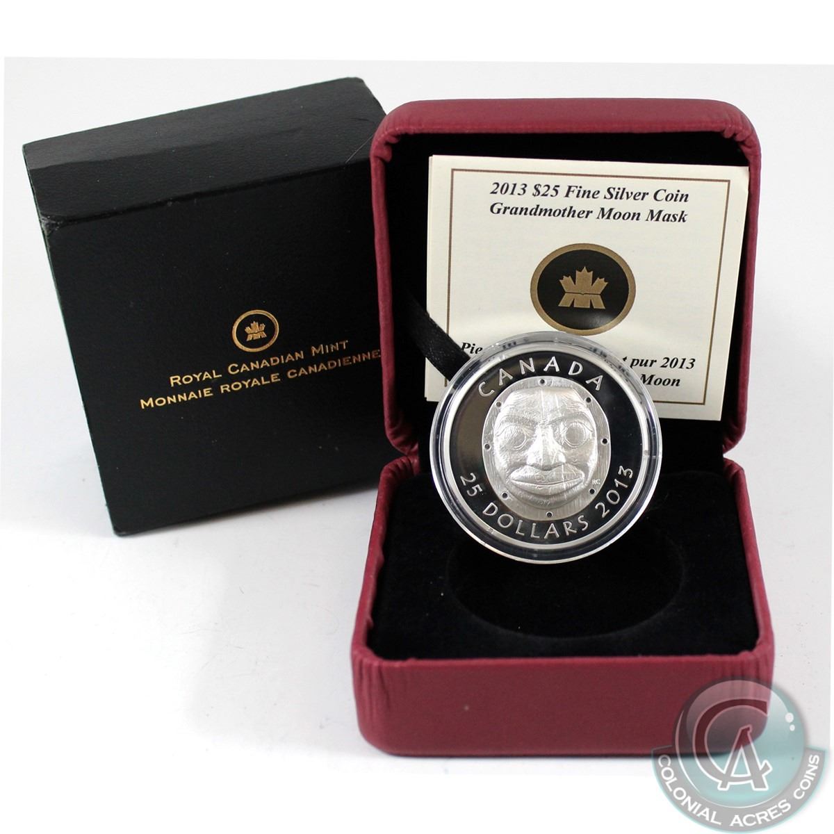2013 Canada $25 Grandmother Moon Mask Fine Silver Coin (outer sleeve slightly worn) Tax Exempt