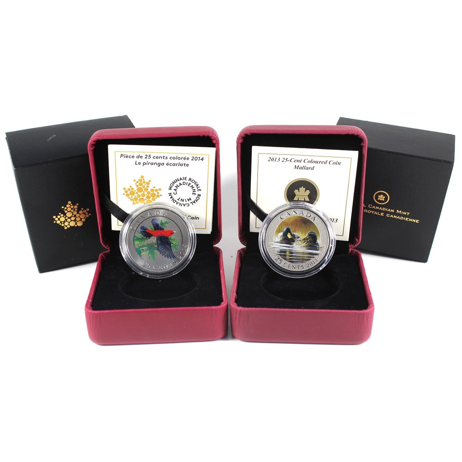 2013 Canada 25-cent Ducks of Canada - Mallard & 2014 25-cent Birds of Canada - The Scarlet Tanager (capsules are cracked). 2pcs