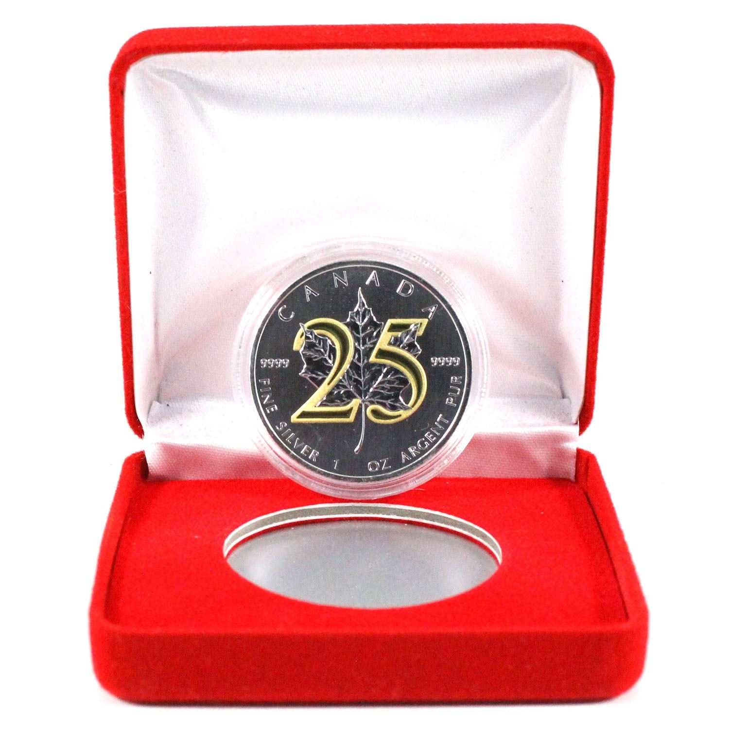 2013 Canada $5 25th Anniversary of the Silver Maple Leaf with Gold Plated "25th". Coin comes encapsulated(TAX Exempt)