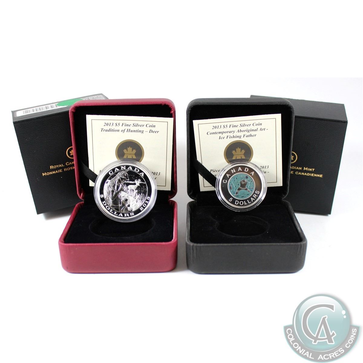 2013 Canada $5 Ice Fishing & Hunting Deer Fine Silver Coins (Tax Exempt) 2pcs.