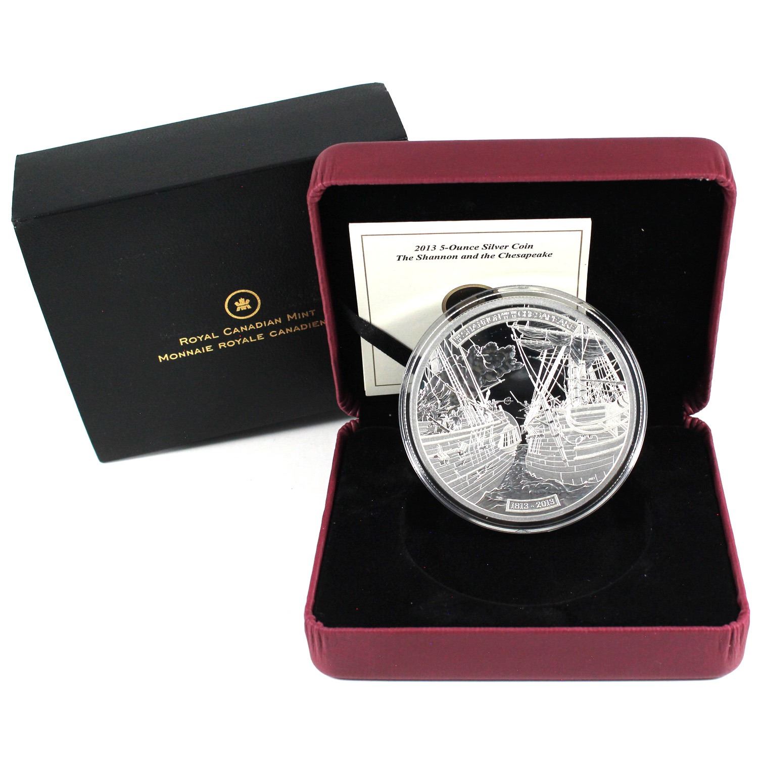 2013 Canada $50 HMS Shannon & USS Chesapeake 5oz Fine Silver Coin (Capsule scuffed). TAX Exempt
