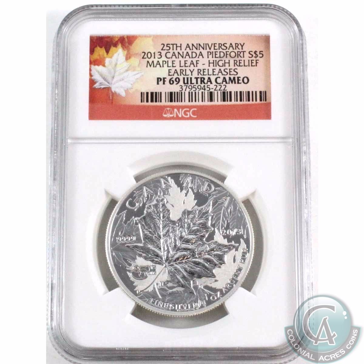 2013 Canada Piedfort 25th Anniversary $5 Silver Maple Leaf High Relief PCGS Certified FIRST STRIKE PR-69 Ultra Cameo