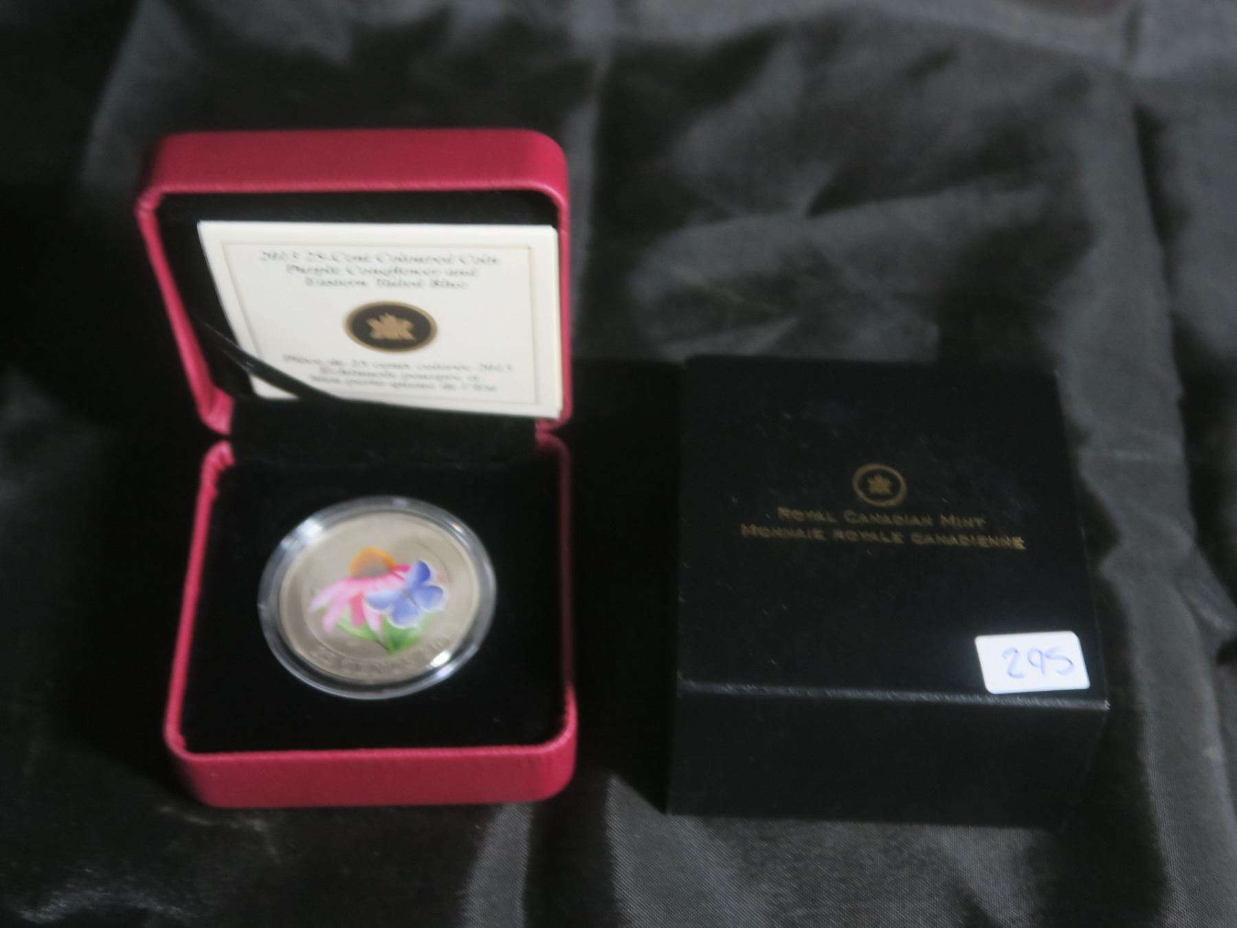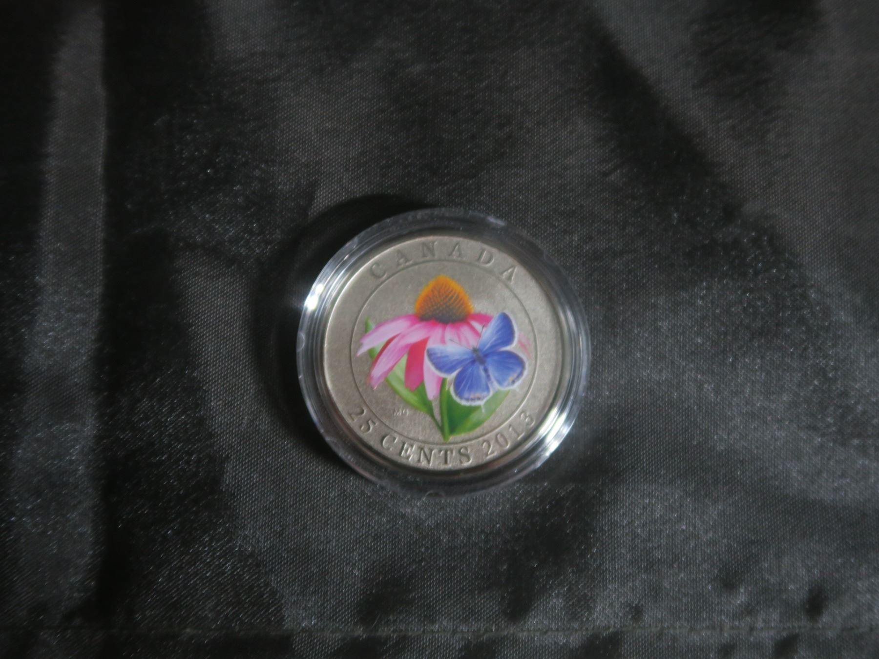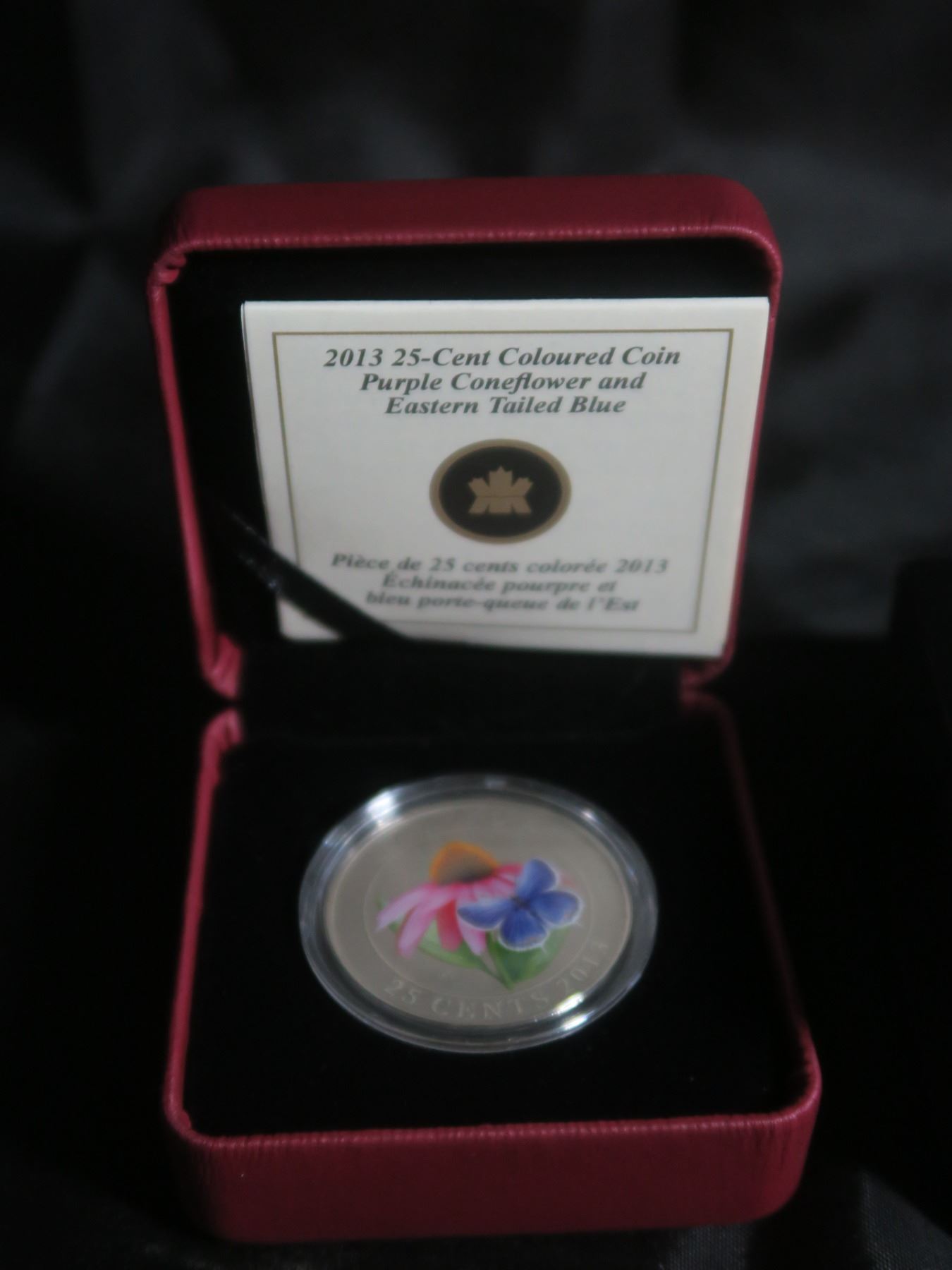 2013 Canadian 25 Cent Coin Colored Purple Coneflower and Eastern Tailed Blue in case
