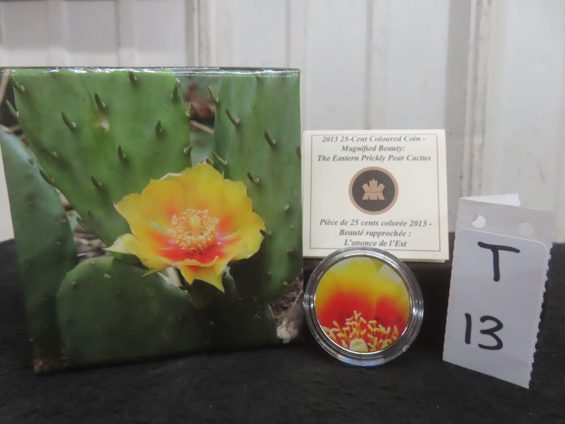 2013 Canadian 25¢ Coloured Coin — Magnified Beauty, “The Eastern Prickly Pear Cactus”