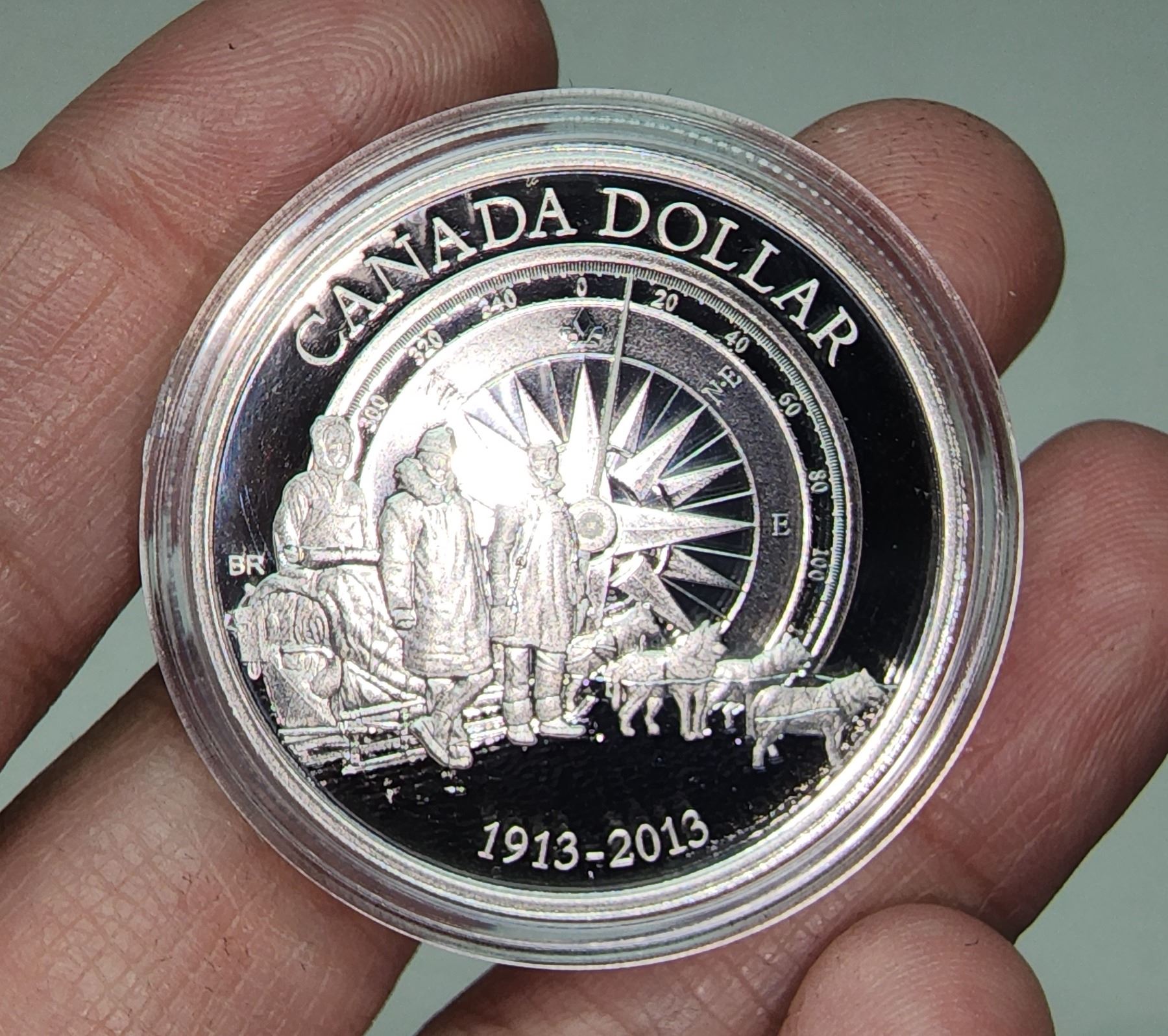 2013 Canadian Arctic Expedition Silver Dollar. 99.99% pure Silver. Proof with Ultra Heavy Cameo. Housed in its original case & box of issue.