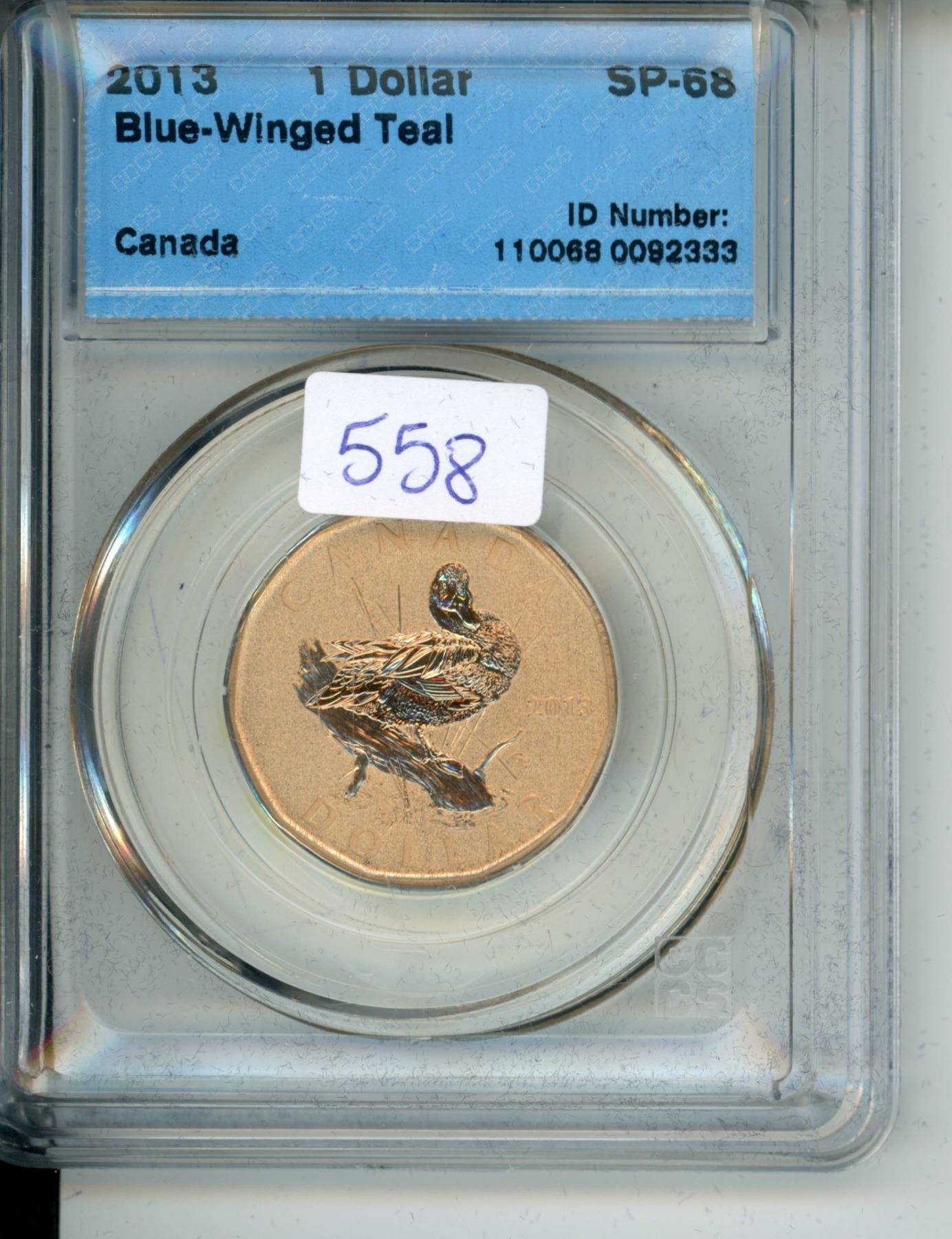 2013 Canadian CCCS Graded 1 Dollar Coin - SP-68, Blue-Winged Teal