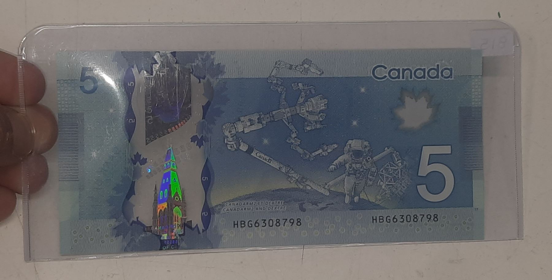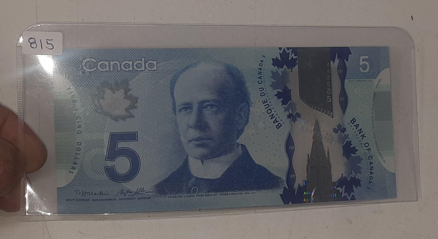 2013 Canadian Five Dollar Bill.