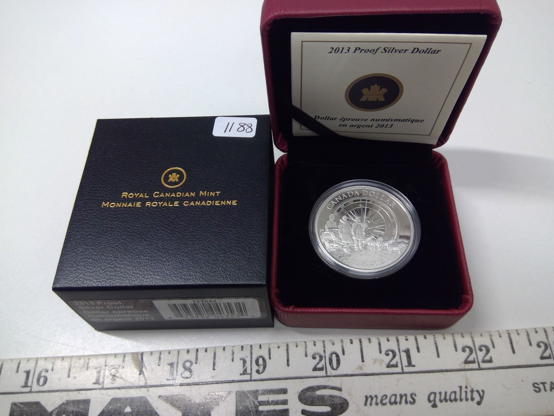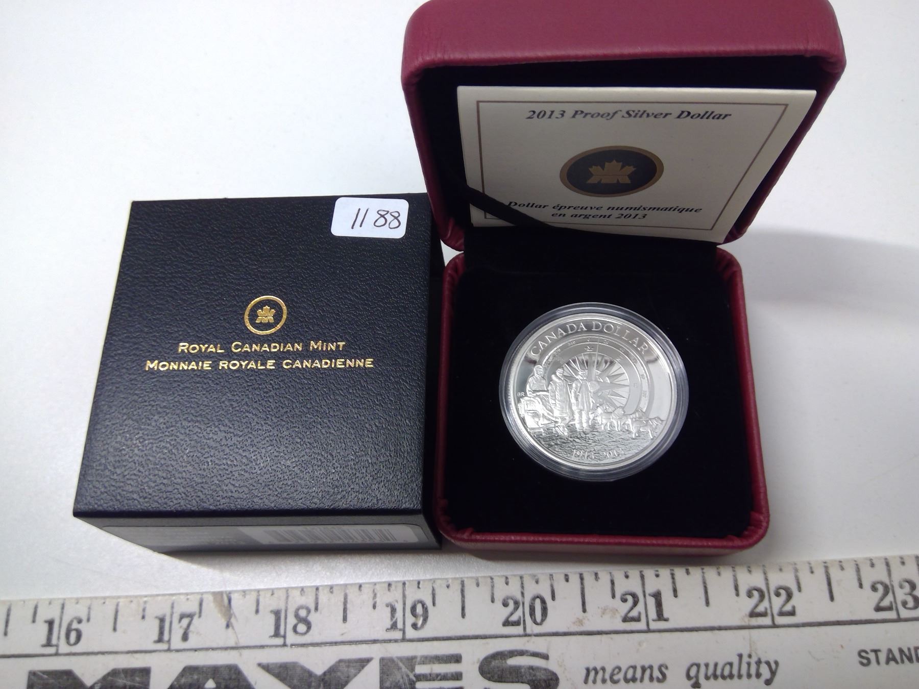 2013 Canadian Silver Dollar. Commemorates the 100th Anniversary of the Canadian Arctic Expedition. 99.99 pure Silver. Proof. In maroon case of issue.