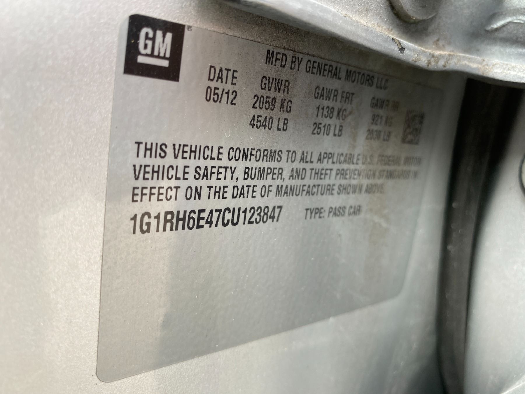 VIN:1G1RH6E47CU123847