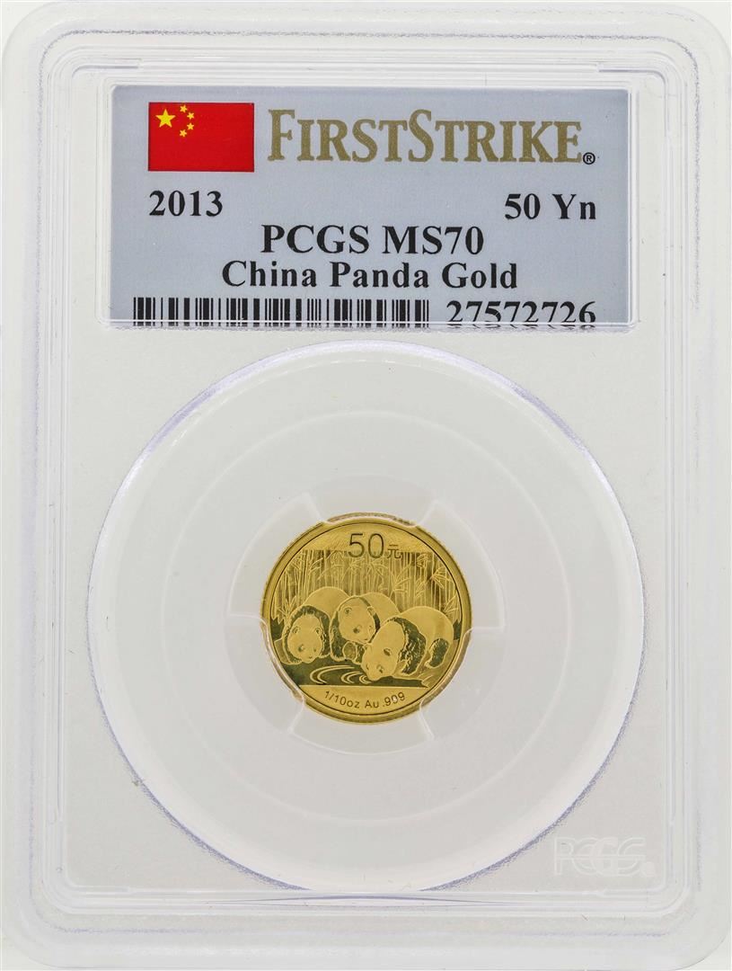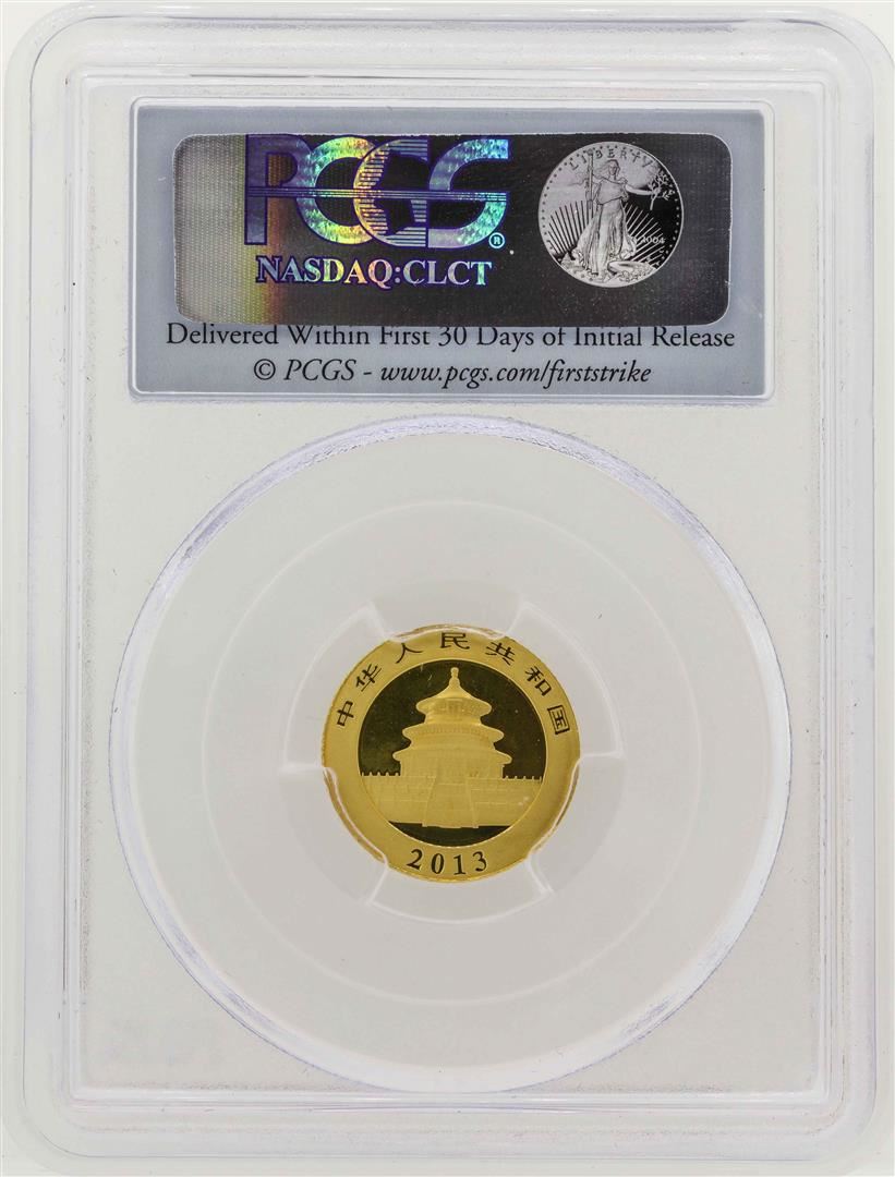 One 2013 China 1/10 oz. Panda Gold Coin PCGS MS70 First Strike. PCGS Certified.