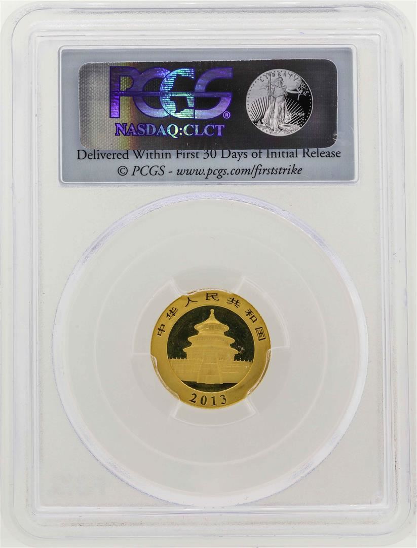 One 2013 China 1/10 oz. Panda Gold Coin PCGS MS70 First Strike. PCGS Certified.