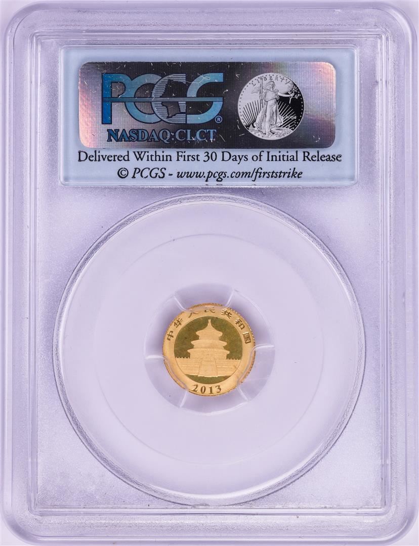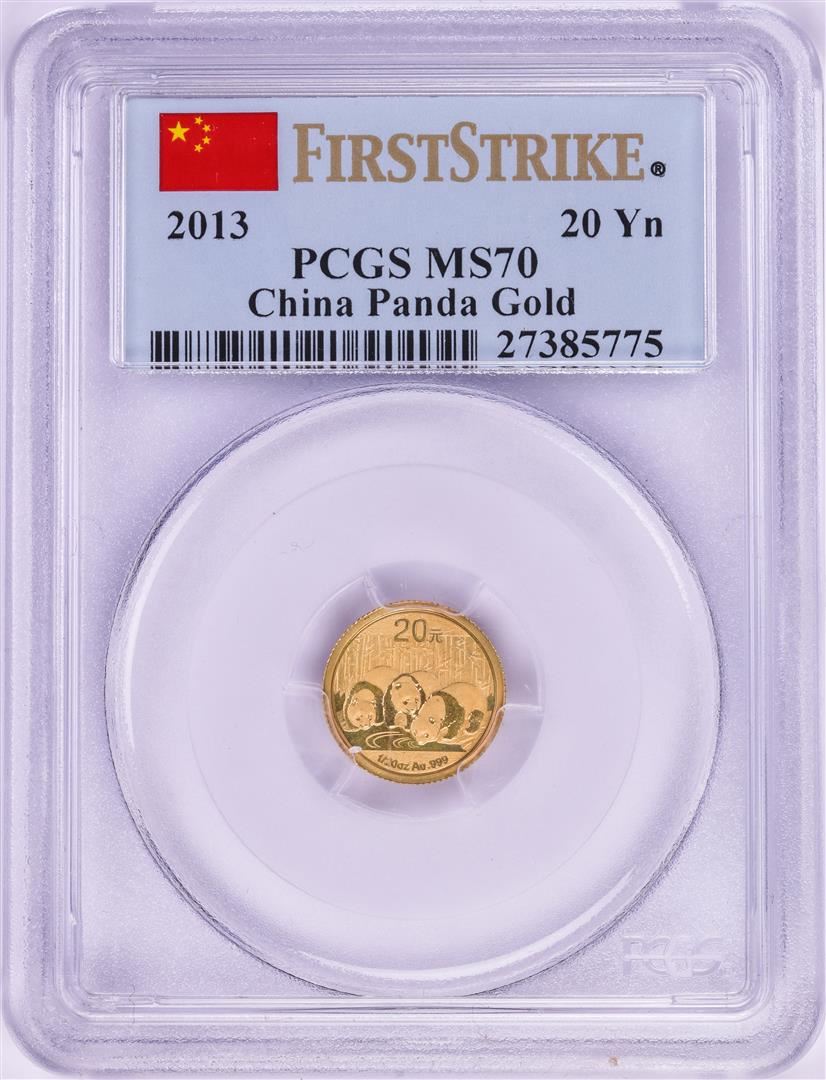 One 2013 China 20 Yuan Panda Gold Coin PCGS MS70 First Strike. PCGS Graded.