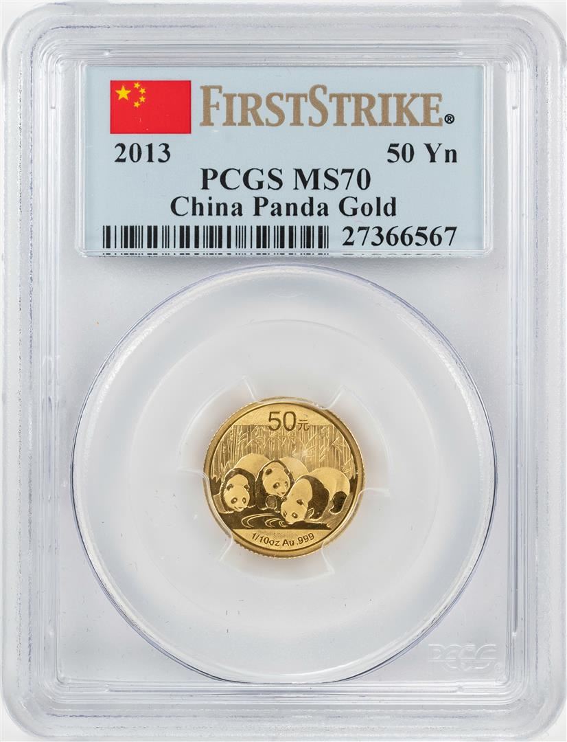 One 2013 China 50 Yuan Panda Gold Coin PCGS MS70 First Strike. PCGS Graded.