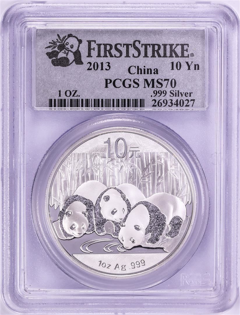 One 2013 China Panda Silver Coin PCGS MS70 First Strike. PCGS Graded.